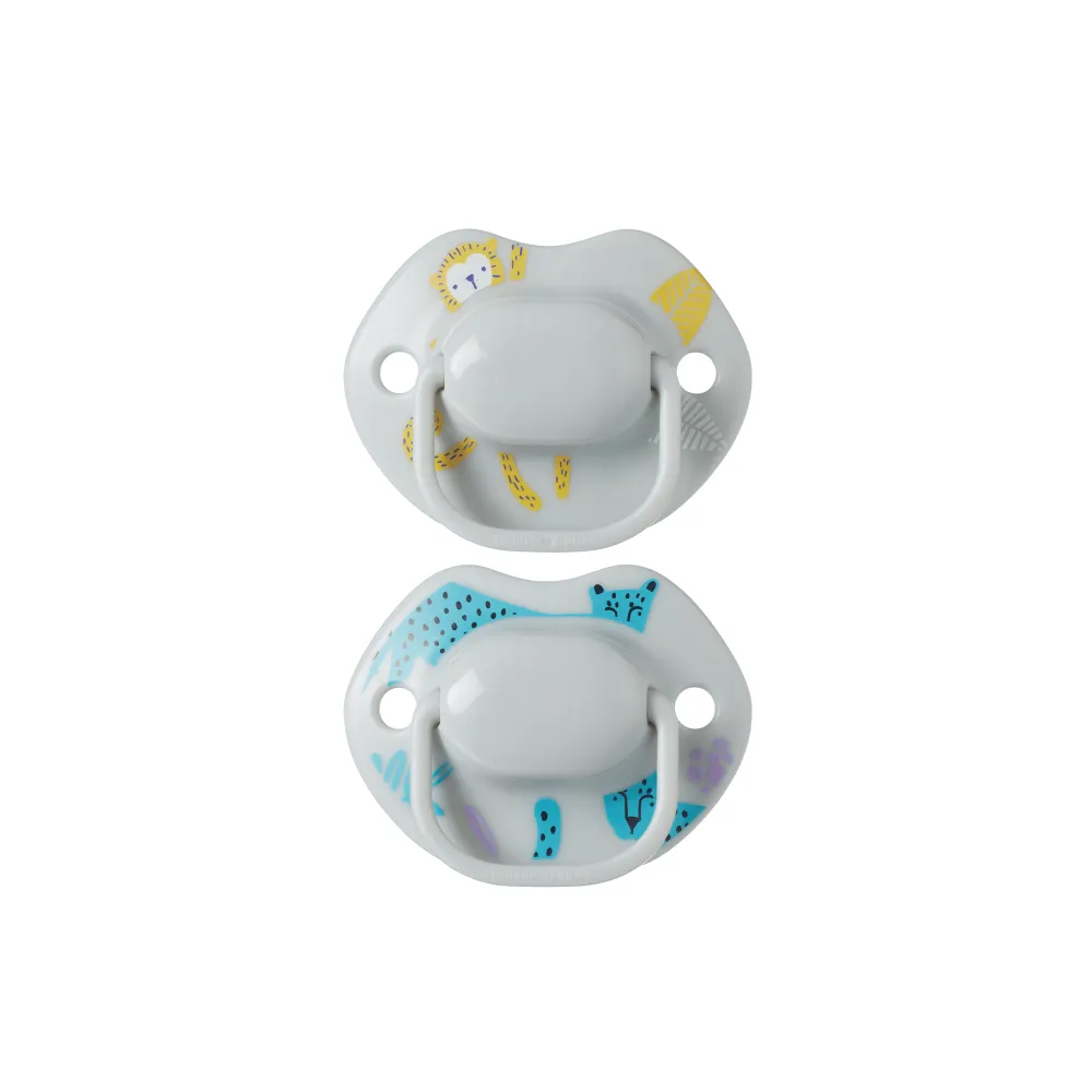 The Tommee Tippee Moda Midnight Jungle Soothers are designed to provide comfort and reassurance for your baby. The orthodontic shape promotes healthy oral development, while the soft silicone material is gentle on baby's delicate skin. The cute jungle animal designs will delight your little one, making soothing time more fun. The soothers come with a convenient sterilizing case for hygiene and peace of mind.