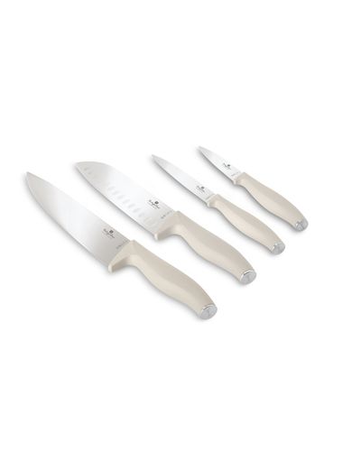Berlinger Haus BH 2959 Sahara Knife Set: Craftsmanship That Elevates Your Culinary Experience Superior Construction and Aesthetic Introducing the Berlinger Haus BH 2959 Sahara Knife Set, meticulously crafted from high-quality 3cr13 stainless steel to ensure longevity and consistent performance. This essential set includes a chef knife, a Santoku knife, a utility knife, and a paring knife, all finished in an elegant cream color that brings a touch of sophistication to any kitchen. 4 pcs knife set Berlinger Haus BH 2959 Sahara Versatile Knife Collection Designed for Precision Chef Knife (20 cm): Perfect for handling big cutting jobs like slicing meats or chopping vegetables. Santoku Knife (17.5 cm): Ideal for tasks that require precision, such as slicing or mincing smaller items. Utility Knife (12.5 cm): Excellent for everyday kitchen tasks, offering great control for detailed cutting. Paring Knife (9 cm): Essential for peeling, slicing, and other fine prep work. Ergonomic Design for Comfort and Safety Each knife in the set features an ergonomic soft-touch handle that provides a comfortable grip, reducing hand fatigue for safer and more efficient cutting. The integrated finger guard protects your fingers from the blade, enhancing safety as you prepare your meals. Hand-Sharpened Blades for Unmatched Quality The blades undergo a specialized heat treatment to increase their durability and edge retention, ensuring that each knife remains razor-sharp. Hand-sharpening further refines these edges, providing a superior cutting experience that both amateur cooks and professional chefs will appreciate. Elegant Cream Finish The soothing cream color of the handles not only looks great but also helps to create a cohesive look with a wide range of kitchen decors. This subtle yet stylish color scheme makes the set a beautiful addition to your countertop. Why Choose the Berlinger Haus BH 2959 Sahara Knife Set? Comprehensive Selection: Provides the essential knives needed for a variety of culinary tasks. Comfort and Control: Ergonomically designed handles with safety features make each knife easy and safe to use. Stylish Presentation: The elegant cream color enhances the visual appeal of your kitchen tools. Elevate your cooking with the Berlinger Haus BH 2959 Sahara Knife Set. Order now to bring both style and precision to your culinary creations!