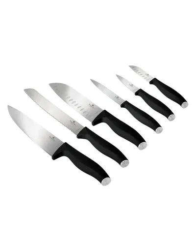 Berlinger Haus BH2950 Black 6-Piece Knife Set – Master Your Culinary Creations! ?? Take your culinary skills to new heights with the Berlinger Haus BH2950 Black 6-Piece Knife Set, a premium collection designed to meet the demands of discerning chefs and cooking enthusiasts. Crafted from high-quality 3cr13 stainless steel and boasting a sleek black design, these knives combine durability, precision, and elegance in one remarkable package. Let’s explore the exceptional features of this set: 6 pcs knife set Berlinger Haus BH2950 Black ?? Chef Knife (20 cm): The 20 cm chef knife is the workhorse of the kitchen, ideal for a wide range of cutting tasks including chopping, slicing, dicing, and mincing. Its precision-crafted blade and ergonomic soft-touch handle provide optimal balance and control for effortless food preparation. ?? Bread Knife (20 cm): Slice through crusty loaves and delicate pastries with ease using the 20 cm bread knife. Its serrated blade ensures clean, uniform slices without crushing or tearing, allowing you to enjoy perfect slices every time. ?? Santoku Knife (17.5 cm): Experience the versatility of the 17.5 cm Santoku knife, perfect for slicing, dicing, and mincing fruits, vegetables, and boneless meats. Its hollow edge reduces friction for smoother cuts, while its ergonomic handle offers a comfortable grip. ?? Utility Knife (12.5 cm): The 12.5 cm utility knife is your go-to tool for a variety of kitchen tasks such as slicing cheese, trimming vegetables, and more. Its compact size and sharp blade make it a versatile addition to any kitchen. ?? Paring Knife (9 cm): The 9 cm paring knife is ideal for intricate tasks such as peeling, trimming, and coring fruits and vegetables. Its precise blade and ergonomic handle provide exceptional control and precision for delicate cutting tasks. ?? Additional Santoku Knife (9 cm): The inclusion of an extra 9 cm Santoku knife adds versatility to your culinary toolkit, allowing for precise and effortless cutting of various ingredients. ?? Magnetic Gift Box: The knives come beautifully packaged in a magnetic gift box, making them the perfect gift for any cooking enthusiast or culinary aficionado. The sleek black design and premium construction ensure a memorable unboxing experience. ? High-Quality Stainless Steel: Crafted from premium 3cr13 stainless steel, the knives in this set are built to last. The heat-treated blades undergo hand sharpening for optimal sharpness and durability, ensuring long-lasting performance. ?? Ergonomic Design: The knives feature ergonomic soft-touch handles and finger guards for added safety and comfort during use. Their elegant design and black finish add a touch of sophistication to any kitchen decor. In conclusion, the Berlinger Haus BH2950 Black 6-Piece Knife Set offers the perfect blend of style, functionality, and craftsmanship for aspiring chefs and seasoned cooks alike. Elevate your culinary creations and enjoy the precision and reliability of Berlinger Haus. ????