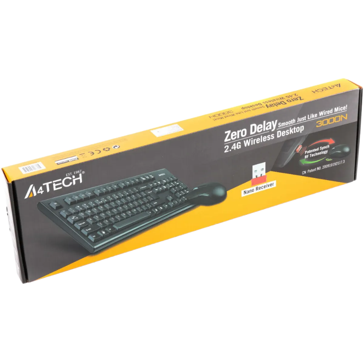 A4Tech (GK-85+G3-200N) 3000N Zero Delay 2.4Ghz Wireless Desktop, Keyboard & Mouse Combo - Black