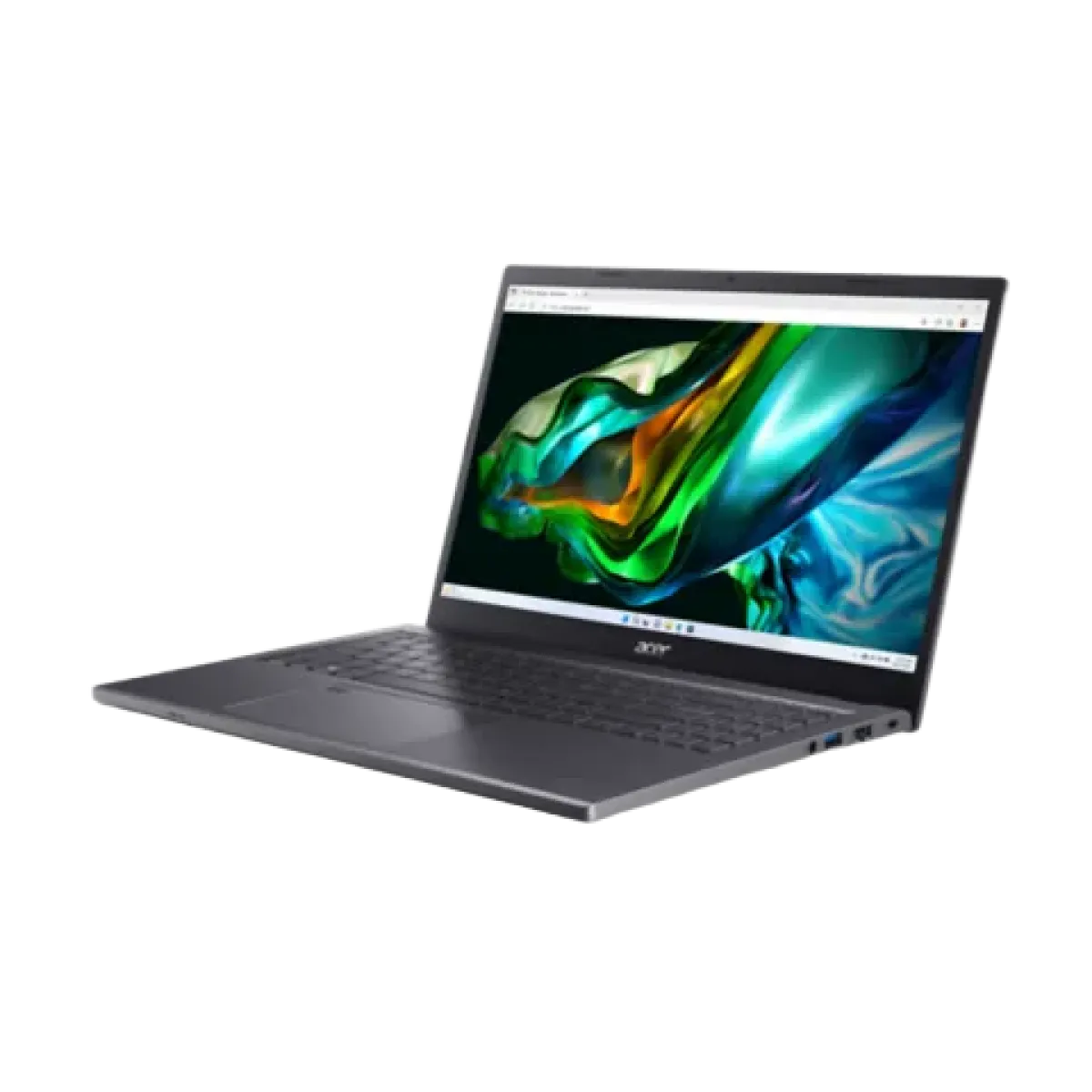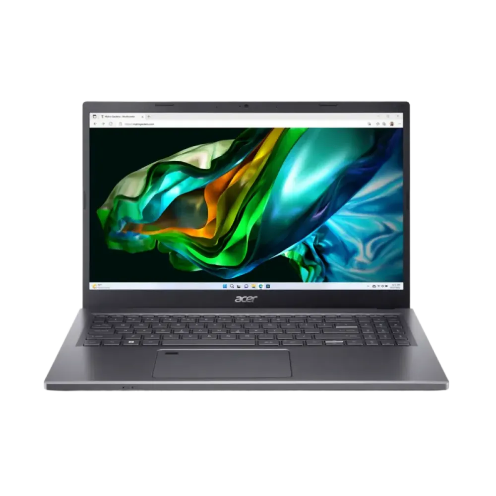 Acer (NX.KGZEM.00B) A515-58GM-77HH Aspire 5 15.6" FHD i7-1355U 8Gb DDR4, 512Gb, RTX2050 4Gb - Grey Processor: Intel i7-1355U up to 5.00GHz 10 Cores 12 Threads Memory: 8Gb DDR4-3200 Storage: 512Gb SSD NVMe Graphics: NVIDIA Geforce RTX2050 4Gb GDDR6 Optical: No ODD Display: 15.6'' FHD (1920x1080) IPS SlimBezel Screen with Acer ComfyView WLan+Bluetooth: Wireless Wi-Fi 6E AX211 + Bluetooth 5.1 Camera: HD camera Ports: 2x USB-A 3.2 Gen1, 1x USB-C 3.2 with Thunderbolt4 (with DP and Powder Delivery), 1x HDMI 2.1; 1x RJ45 ; 1x headphone/mic jack Multimedia: Bottom-firing stereo speakers Keyboard: Backlit Keyboard US Layout / Fingerprint Sensor Battery: 3-cell Li-ion 50W / 90W AC adapter OS: DOS Warranty: 1 Year Warranty Period Color: Steel Gray Weight: 1.8kg Included: Wireless Mouse and Bag