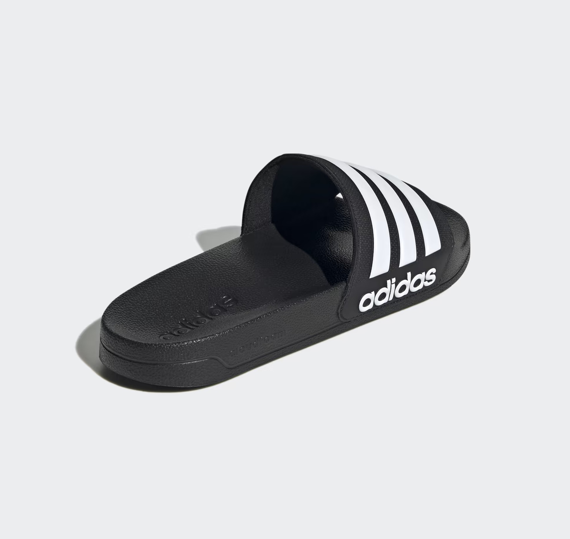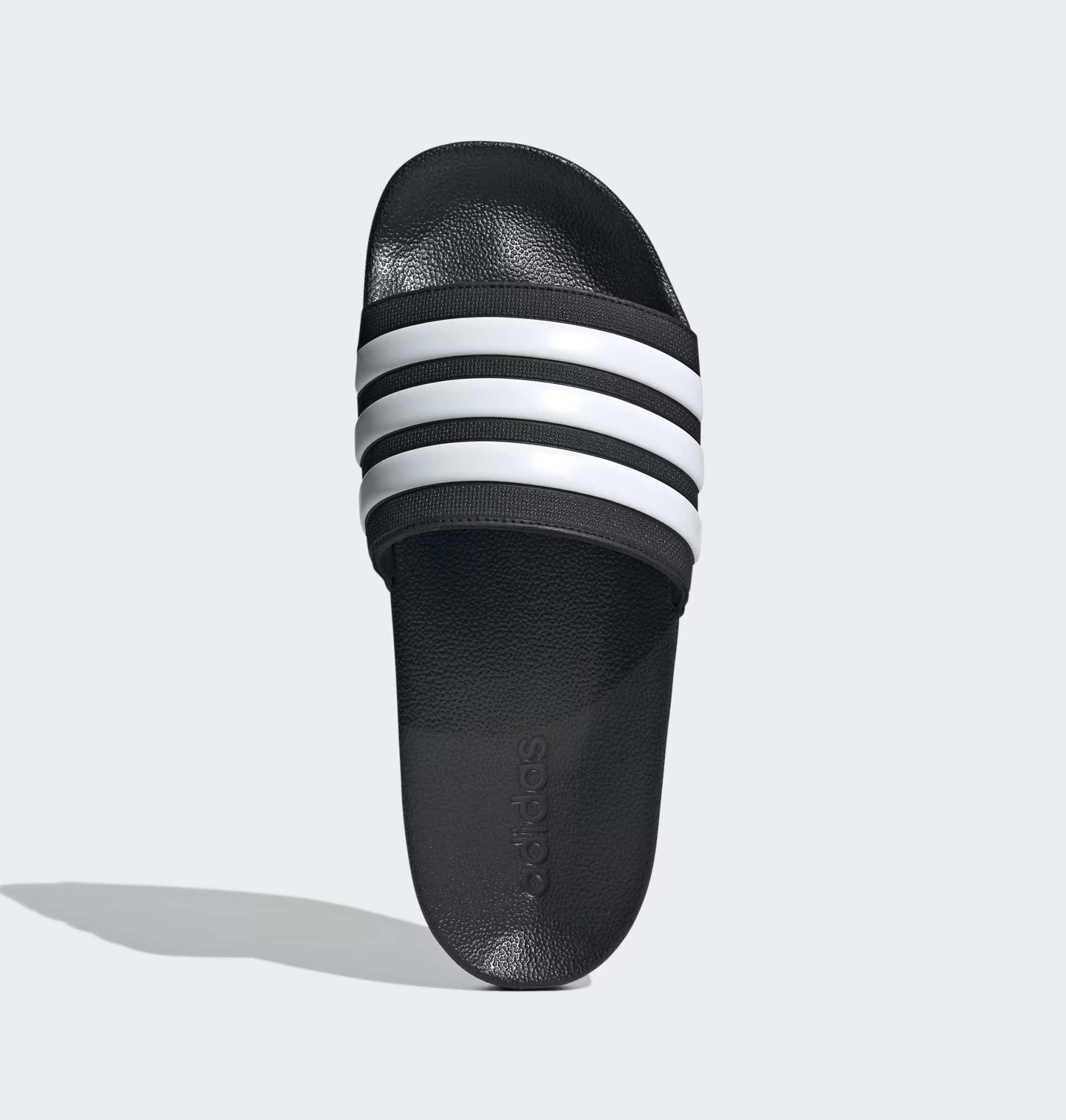 From the pool deck to the shower to the couch, these slides are made for the work-hard-rest-hard lifestyle. The slip-on construction gives you a snug fit that's easy to kick on and off as needed. Lightweight cushioning keeps your feet cradled in all-day comfort. The adidas logo and 3-Stripes design complete the iconic Adilette style. Regular fit Slip-on construction Synthetic upper Textile lining Contoured footbed Material: Cloudfoam midsole Synthetic outsole Product color: Core Black / Cloud White / Core Black Product code: GZ5922