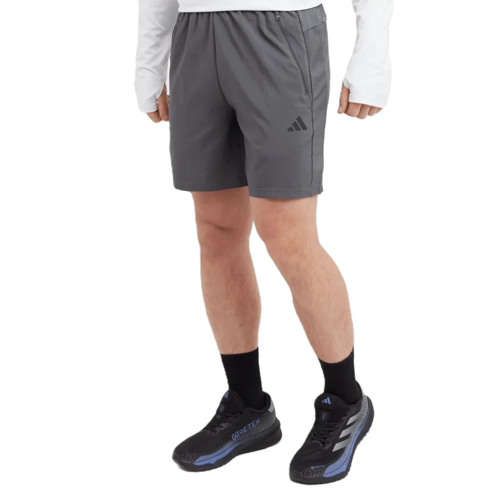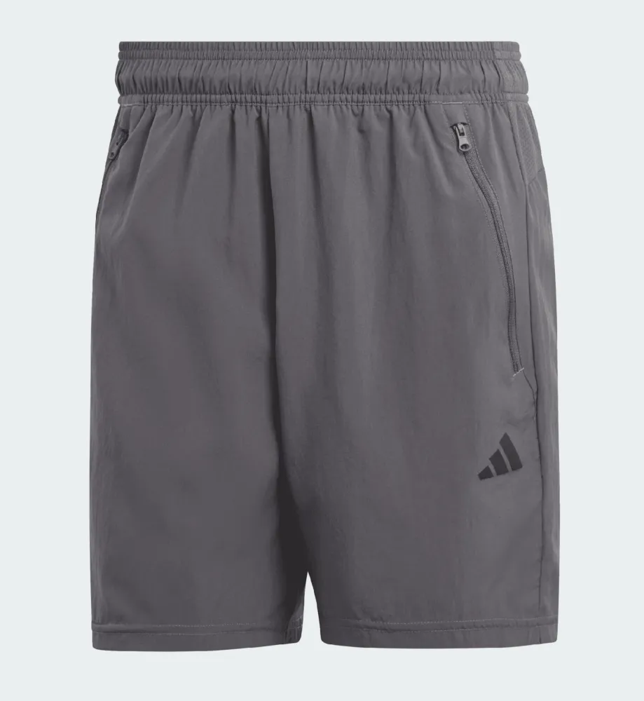 This pair of adidas training shorts is the one you'll want to throw in your gym bag on the day you plan to hit your PR. Lightweight woven fabric and AEROREADY keep you dry and comfortable as you dig deep for that extra squat rep. They're cut for unrestricted movement, so there's nothing holding you back. Highlights Regular fit Elastic waist with inner drawcord AEROREADY Front zip pockets Composition 100% recycled polyester plain weave