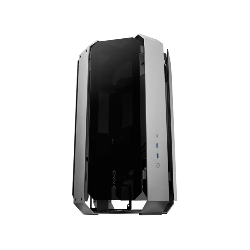Azza (CSAZ-809) Opus Gaming Chassis - RGB - Grey- Type: ATX Tower- Color: Space Gray with Tinted Glass (exterior) / Black (interior)- Side Panels: 4x Tempered glass; Sandblasted Anodized Aluminum Structure- Max CPU Cooler Height: Up to 60 mm- Motherboard Compatibility: E-ATX, ATX, Micro-ATX, Mini-ITX- 2.5" Drive Bays: Up to 2- 3.5" Drive Bays: 1- Expansion Slots: 3 (Vertical)- I/O Ports: Power button; 2x USB 3.0; 1x USB-C- Case Dimension (H x W x D): 539 x 320 x 320mm - Available Fan Ports: 3x 120 mm fan ports in the rear- Water Cooling: Supports radiators up to 360 mm in the rear- Included Accessories: 1x 300mm PCI-e 4.0 Riser Cable; 1x PSU mesh dust filter- Weight: 8.7kg
