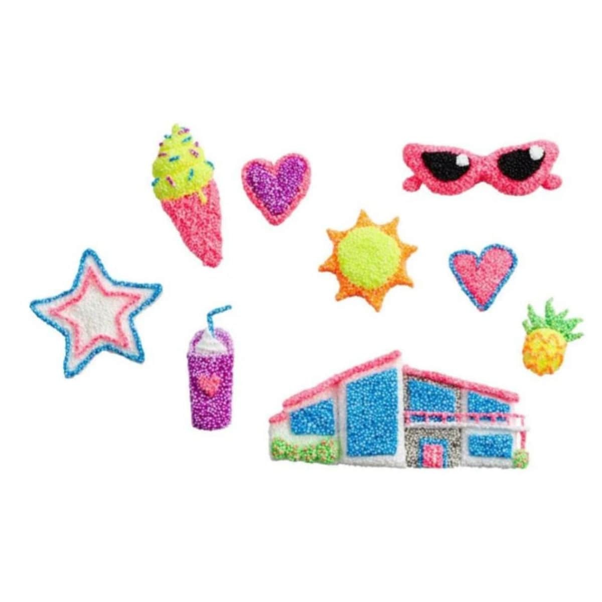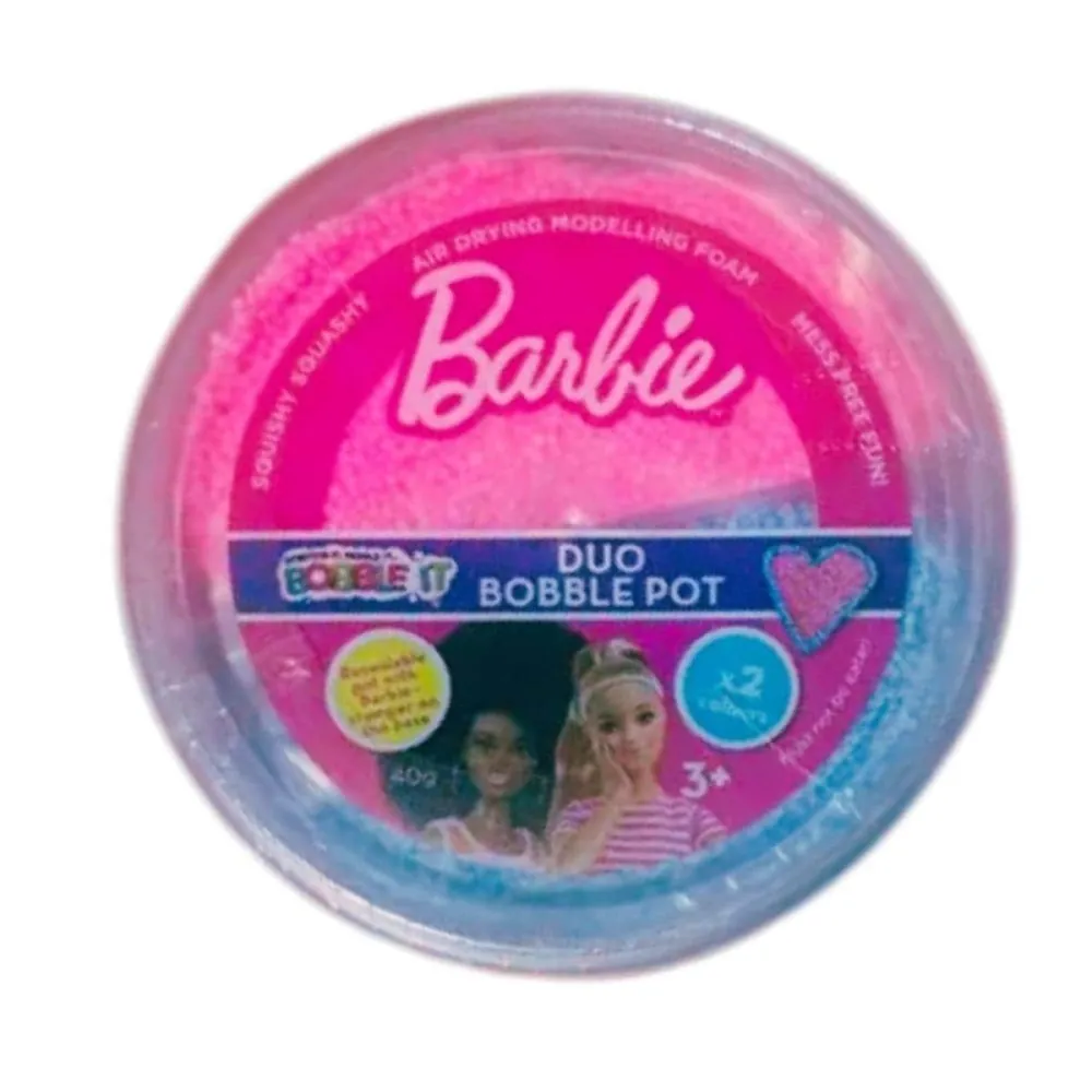 Barbie Bobble It Pots by Addo Play: A creative craft set where kids can stretch, mold, and "bobble" air-drying foam to make personalized 2D mini creations featuring Barbie templates. The set includes colorful Bobble It, super soft dough, templates, tools, and sticky dots to attach the finished designs to bags, notebooks, and more. Suitable for ages 6+