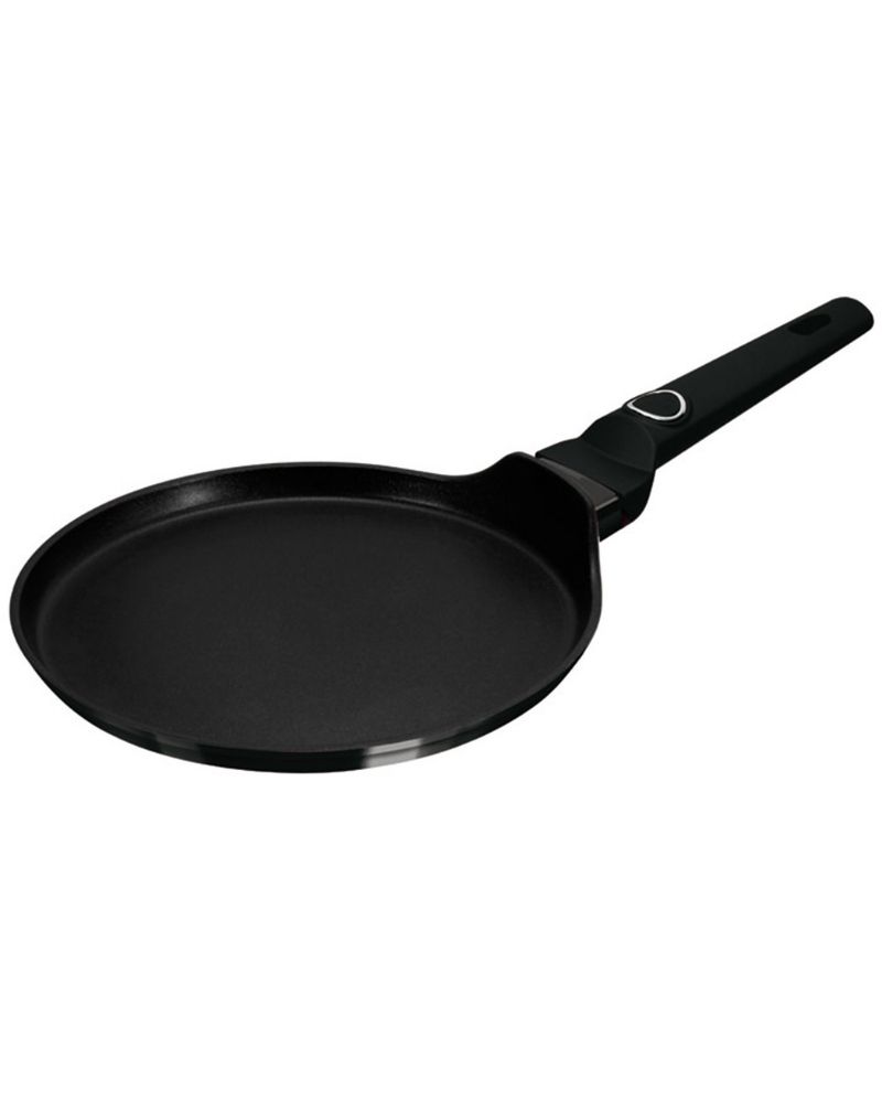 Berlinger Haus Black Vantage 25CM PANCAKE PAN b/6 3x durable non-stick titanPro coating Stay cool ergonomic soft touch handle Minimalist style Turbo induction based Suitable for all type of hobs ECO friendly PFOA, LEAD, Cadmium free Easy to clean Material: forged aluminum with non-stick titanPro coating Sauce pan diameter: 16X7 cm 1,2L Color: shiny black