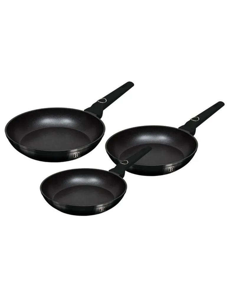 Berlinger Haus Black Vantage 3PCS FRYPAN SET b/6 3x durable non-stick titanPro coating Stay cool ergonomic soft touch handle Minimalist style Turbo induction based Suitable for all type of hobs ECO friendly PFOA, LEAD, Cadmium free Easy to clean Material: forged aluminum with non-stick titanPro coating Include: Frypan diameter: 20X4,5 cm 1,0L Frypan diameter: 24X4,8 cm 1,7L Frypan diameter: 28X5,2 cm 2,4L Color: shiny black