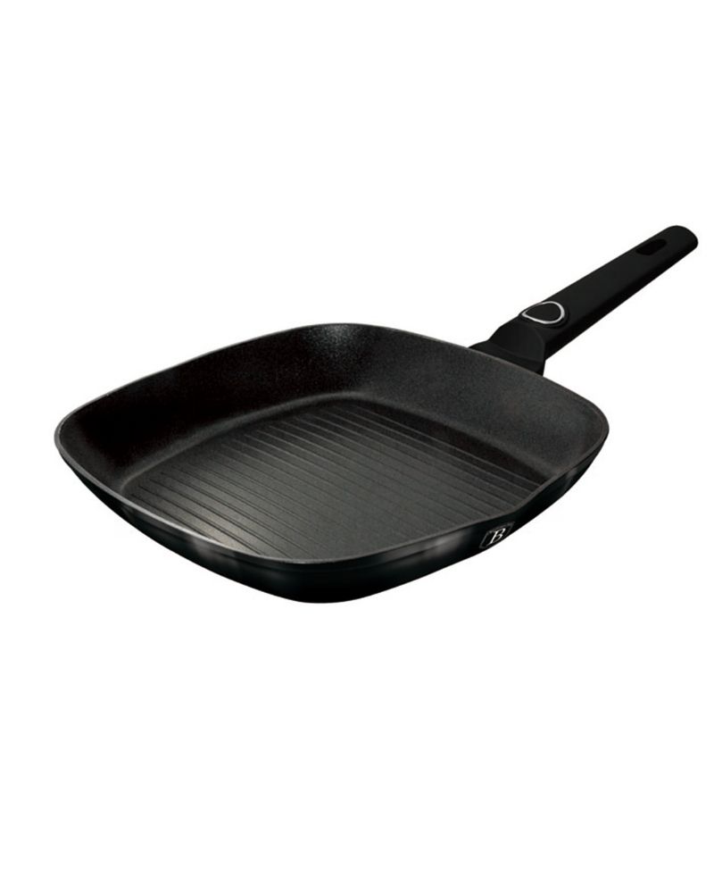 Berlinger Haus Black Vantage Grill Pan b/6 3x durable non-stick titanPro coating Stay cool ergonomic soft touch handle Minimalist style Turbo induction based Suitable for all type of hobs ECO friendly PFOA, LEAD, Cadmium free Easy to clean Material: forged aluminum with non-stick titanPro coating Grill pan diameter: 28X4,1 cm 2,1L Color: shiny black