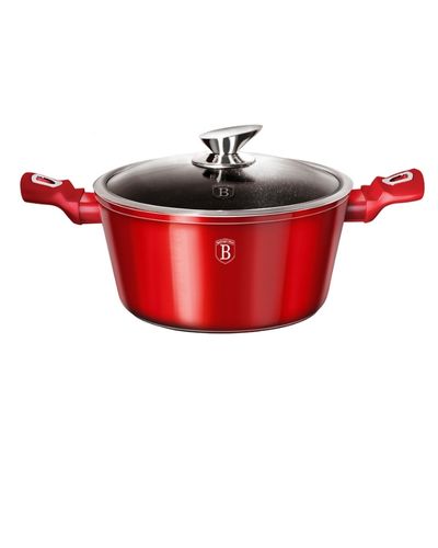 • Material: forged aluminum • Size: • Casserole with lid ?20*10,4 cm 2,2L • Color: metallic burgundy REGISTERED DESIGN • Forged aluminium thick wall body material • 3 layer non-stick marble coating • Ergonomic Soft-touch handle • T-glass lid with s/s knob