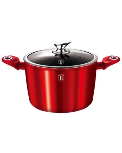 - Material: forged aluminum • Size: • Casserole with lid ?30cm • Color: metallic burgundy REGISTERED DESIGN - Forged aluminium thick wall body material • 3 layer non-stick marble coating • Ergonomic Soft-touch handle • T-glass lid with s/s knob and 18/1