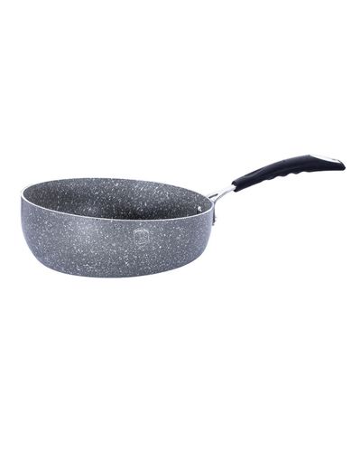 Flip frypan, 26 cm, Stone Touch Line FREE PROTECTOR Material: forged aluminum Handle: stainless stell with heat resistant silicone Size: Flip frypan ? 26 cm, 2,8 L Color: gray/black ? 3-LAYER STONE-TOUCH MARBLE COATING ? OVEN SAFE UNTIL 220°C