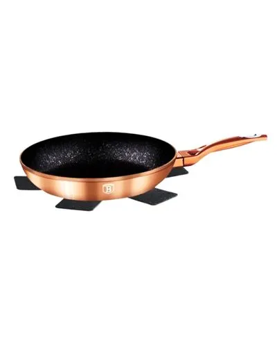 - Material: forged aluminum • Size: • Frypan ?20*4,5 cm 1,0L • Color: metallic rose gold REGISTERED DESIGN - Forged aluminium thick wall body material • 3 layer non-stick marble coating • Ergonomic Soft-touch handle • Turbo induction based