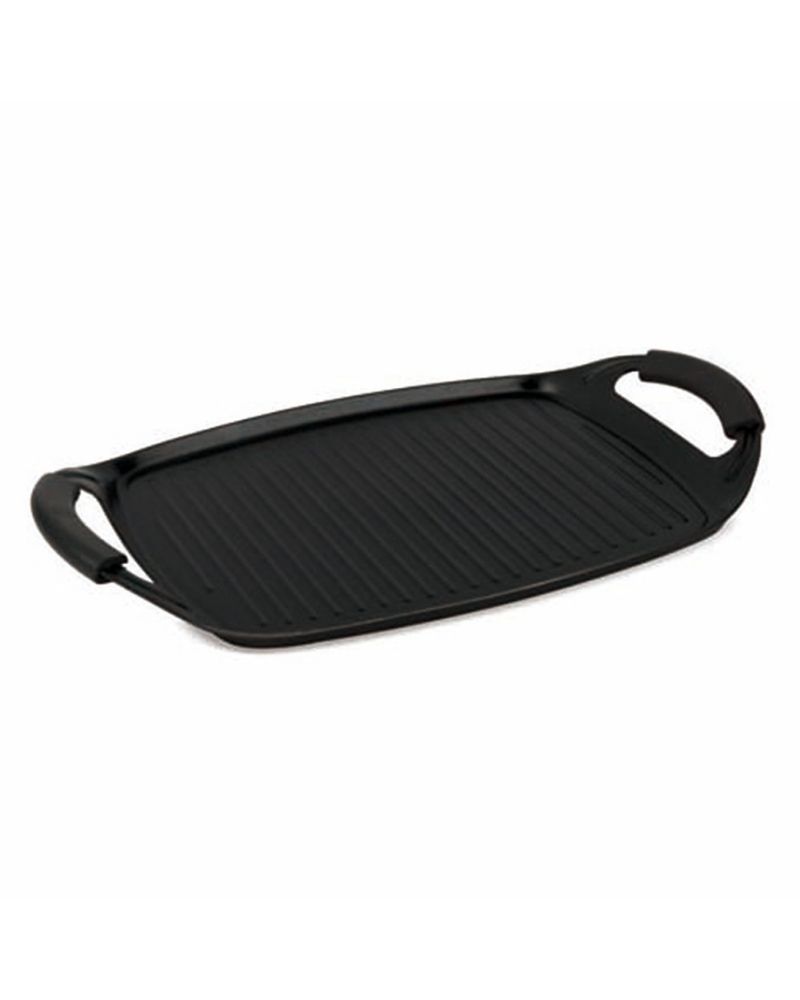 Berlinger Haus Matte Black 47*29CM GRILL PLATE b/6 3 layer non-stick titanPro coating Removable silicone handles Turbo induction based Oven safe: +220°c Dishwasher safe - easy to clean! ECO friendly PFOA, LEAD, Cadmium free Suitable to cook different kind of food in same time Material: forged aluminum with non-stick titanPro coating Size: 47X29 cm Color: matt black FREE 2 PCS HEAT RESISTANT SILICONE HANDLE