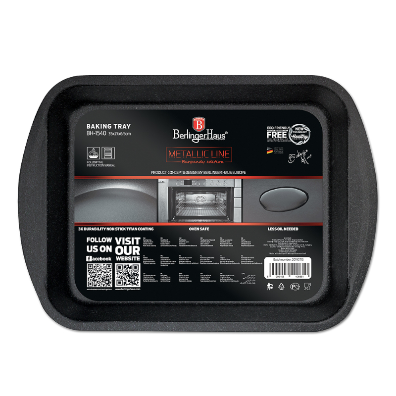 - Material: carbon steel with titan non-stick coating • Size: 35*27*6,5 cm • Color: metallic burgundy - Titan non-stick coating • Made by heavy grade steel • Stylish • Special Metallic Edition • Elegant design with metallic outside color