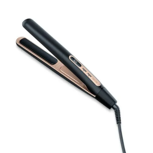 For sleek and shiny hair: the hair straightener with ion function is ready to use in just 12 seconds. Thanks to the rounded housing, you can not only straighten your hair, but also create beautiful waves. Salon-quality look! Versatile temperature setting from 120°C – 220°C