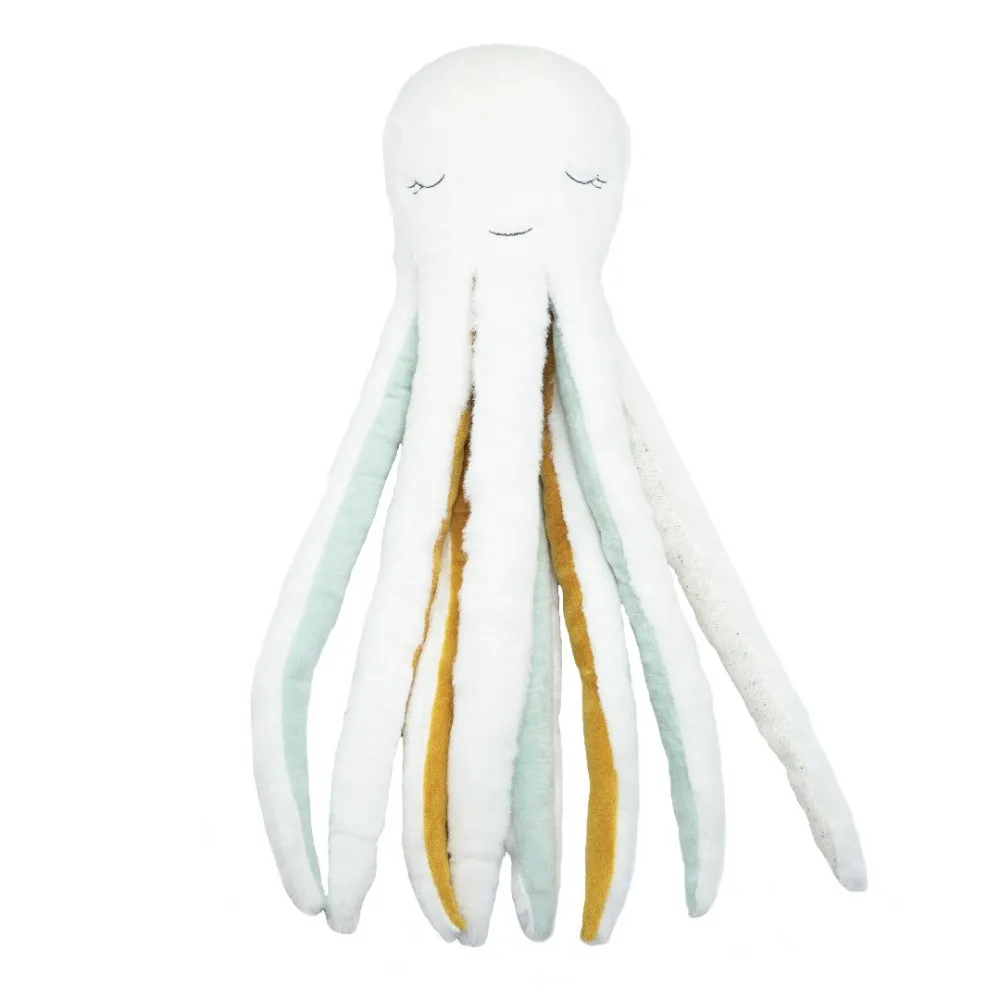 Poulpie, our sublime baby plush toy octopus will embrace baby for thousands of cuddly moments. Baby will have great adventures with their soft and super cute octopus plush. It will accompany your child for many years.