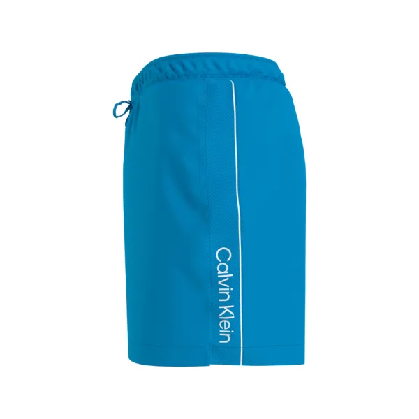Calvin Klein KM0KM00958 swim shorts are made from 100% recycled polyester fabric, excluding trims. The recycled polyester is created by reprocessing existing materials.