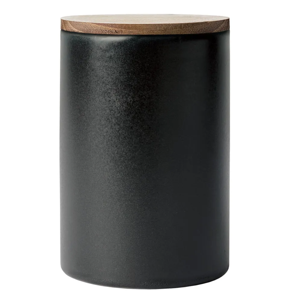 Canister Aida with Lid Raw Titanium Black Teak
