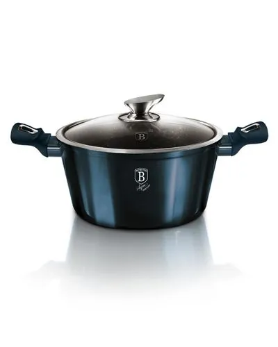 Casserole with lid, 30 cm, Metallic Line Aquamarine Edition Casserole with Lid 30?? Berlinger Haus BH 7148 Aquamarine Edition This elegant 30 cm casserole from our Metallic Line Aquamarine Edition is made of forged aluminum thick wall body material and a 3-layer non-stick marble coating. The high-quality materials used provide excellent thermal conductivity and allow the food to be cooked evenly on all sides. With the triple layer of the marble coating, the food won’t burn or stick. The ergonomic soft-touch handle offers a good grip and safe cooking as it does not get hot during cooking. The casserole is stackable, which makes it a great asset to any large or small kitchen and will save you the much-needed space for other stuff. With the help of the plastic lid, you no longer have to transfer the food to a separate container before storing it in the fridge. Casserole with Lid 30?? Berlinger Haus BH 7148 Aquamarine Edition Material: forged aluminum • Casserole with lid ?30*13,5 cm 8L • Color: metallic aquamarine REGISTERED DESIGN BY BERLINGER HAUS!!! • Forged aluminium thick wall body material • 3 layer non-stick marble coating • Ergonomic Soft-touch handle • T-glass lid with s/s knob and 18/10 s/s ring • Turbo induction based • Suitable for all type of hobs including Induction hob (Energy saving!) • Elegant design • Metallic outside color • Can hanging on • ECO friendly PFOA, LEAD, Cadmium free • Easy to clean (Made from efficiently and hygienically materials!) Maintenance instructions before its first use: Start by removing all labels, carefully wash and rinse the cookware with a mild detergent and water. Next, dry the cookware with a soft towel. Cleaning instructions: After cooking, leave the cookware to cool down to room temperature. Do not try to cool down by pouring cold water into the cookware. Clean the product thoroughly after use in order to remove all stains that may become ground-in due to the heat during the next use of the product. In order to remove ground-in stains, pour hot water into the pot to soften the stains. Then rub it thoroughly with a mild detergent and a soft scourer. Do not use a metal scourer when washing or metal utensils for cooking to prevent damaging the non-stick coating and the metallic color of the cookware. Do not use abrasive cleaning products. Gentle cleaning is recommended to preserve the excellent condition of the product, therefore daily cleaning in the dishwasher should be avoided. The manufacturer recommends using low-temperature programs and non-corrosive cleaning agents when washing in the dishwasher.