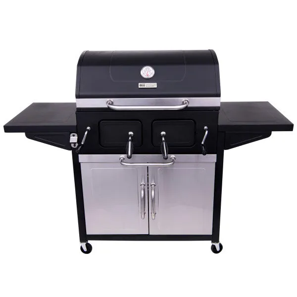 The American Gourmet Cabinet Charcoal Grill By Char-broil® Is A Large Capacity Grill That Is Packed With Convenient Features For Your Grilling Enjoyment.581-square-inches Of Primary.Cooking Space And 270-square-inches Of Secondary Space.Two Charcoal Access Doors To Easily Tend Fire.Two-door Cabinet To Store Supplies.Two Height-adjustable Charcoal Pans For Temperature Control