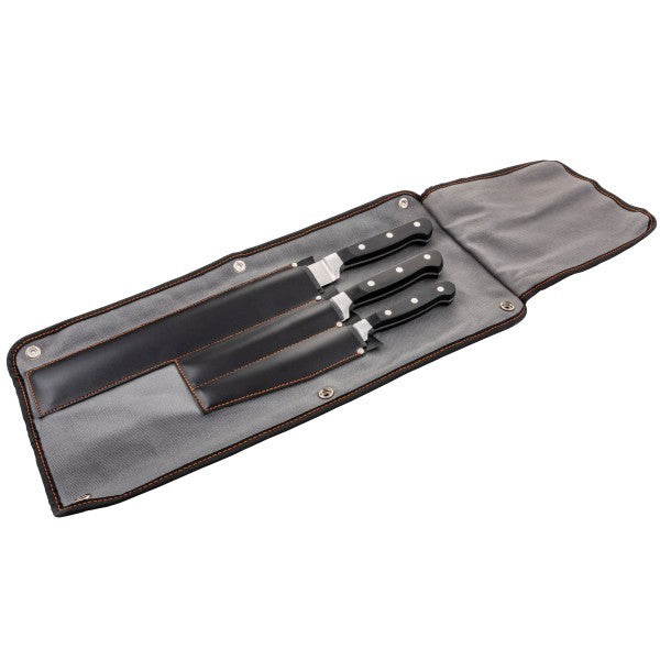 The Oklahoma Joe’s® Blacksmith 3-piece Knife Set Offers The Reliability And Versatility Necessary To Trim, Slice And More When Prepping For Your Next Smoke. All Knives Feature A Full-tang, Single Blade Varying In Thickness And Edging. Supported By A Thick Bolster And Riveted Construction, You Can Count On These Knives To Cut Your Meat With Ease, Before, During And After Your Smoke. Includes A Protective Knife Roll.Custom Selected Knife Kit Includes: Brisket Knife, Boning Knife And Utility Knife.Riveted, Full-tang Handles Deliver Increased Stability.Includes A Protective Knife Roll For Easy Storage And Transport.