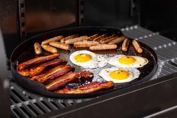 $NaN The Oklahoma Joe's® Griddle & Pizza Steel Expands The Versatility Of Your Grill Or Smoker To Cook A Wide Variety Of Foods For Breakfast, Lunch And Dinner. Place The Flat Round Griddle Surface On Top Of The Grates And Cook Everything From Pancakes And Sausage To Grilled Sandwiches And Pizza. You Won't Have To Worry About Grease Or Food Dropping Into The Fire With The Built-in Grease Channel And Side Wall. It's Durable, Yet Lighter Than Cast Iron With Carbon Steel Construction That Heats Up Quickly And Evenly.Custom Designed For The Blackjack Kettle Charcoal Grill And Bronco Drum Smokers, You Can Also Use This Griddle Pizza Steel With Any Grill Or Smoker That Has Sufficient Cooking Space.Flat, Round 18-inch Griddle Surface For Cooking Versatility.Depth 48.25cm Width 48.25cm Height 3.2cm.