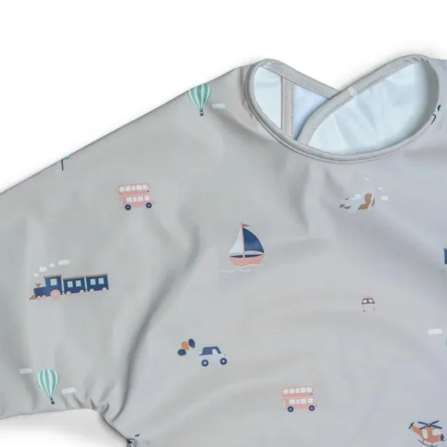 Designed to provide full coverage, this waterproof bib features elasticized cuffs to protect children’s clothing from spills and messes during mealtimes. Its large flip pocket efficiently catches dropped food and liquids, minimizing cleanup. The bib closes with a gentle, no-scratch fastener that is comfortable for kids and easy for parents to use. Made from wipe-clean materials, it is durable and hygienic for everyday use. The playful "Vehicles" design adds a fun element to mealtime, while the lightweight fabric ensures children remain comfortable and unrestricted. Ideal for toddlers learning to feed themselves.