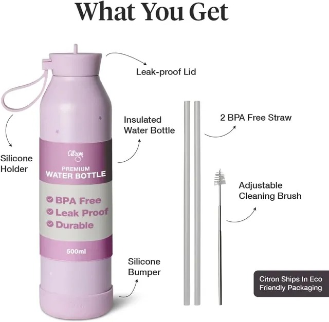 The Citron Spaceship Stainless Steel Water Bottle holds 500ml and keeps drinks cold for 24 hours or hot for up to 12, thanks to its vacuum-insulated, double-wall design. Made from food-grade stainless steel and free of BPA and phthalates, it’s a safe, eco-conscious hydration option for school, sports, or day trips. The leakproof lid and slim profile make it easy to carry in any backpack, while the bold spaceship print adds a fun and adventurous touch.