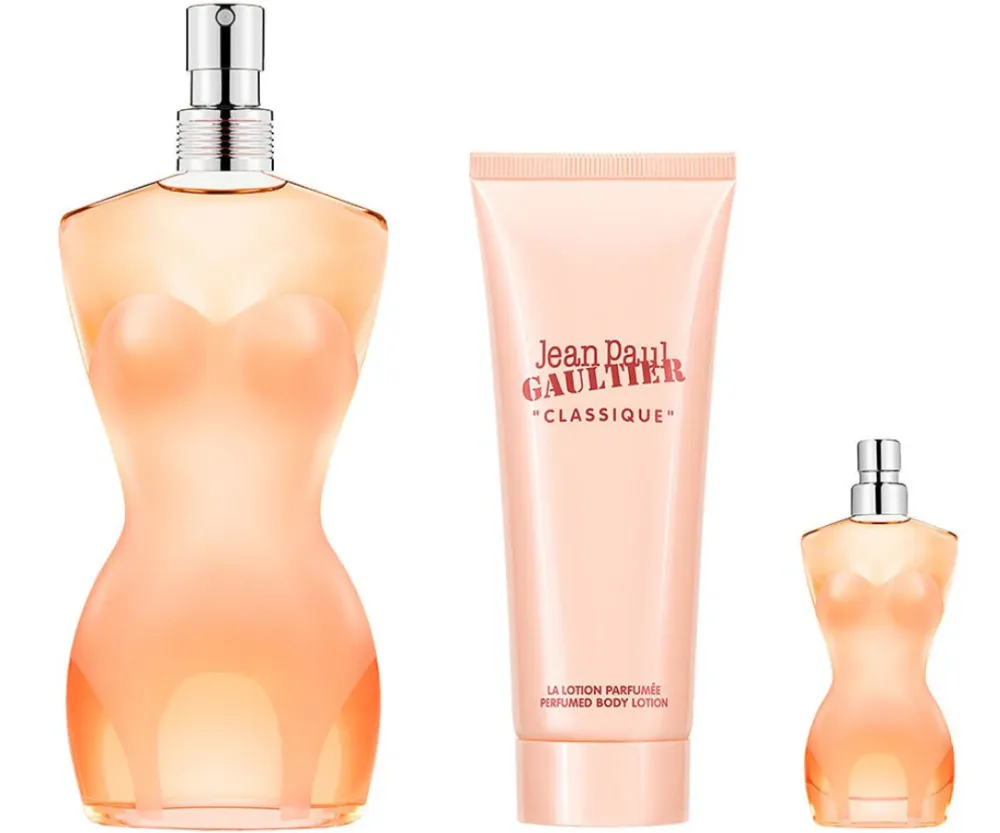 This Set Contains: - Jean Paul Gaultier Classique Eau De Toilette 100ml - Body Lotion 75ml - Mini Eau De Toilette 10ml Classique by Jean Paul Gaultier is a Oriental Floral fragrance for women. Classique was launched in 1993. The nose behind this fragrance is Jacques Cavallier Belletrud. - Top notes are Orange Blossom, Star Anise, Rose, Mandarin Orange, Pear and Bergamot; - Middle notes are Ylang-Ylang, Ginger, Orchid, Iris, Tuberose and Plum; - Base notes are Vanilla, Amber, Musk, Cinnamon and Sandalwood.