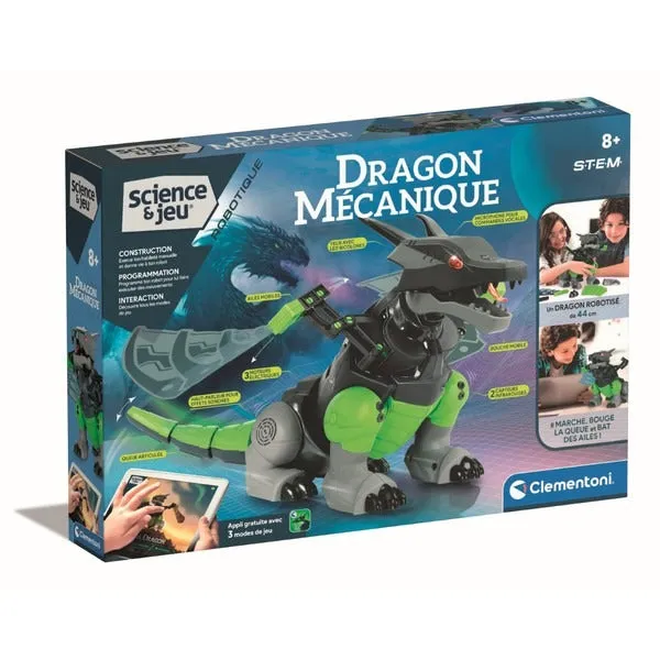 This kit enables the creation of an extraordinary mechanical dragon that utilizes three motors and multiple sensors to engage with the child and their surroundings, providing limitless adventures. Control of the dragon can be achieved through an app that communicates via high-frequency signals, the included whistle, or by simply clapping hands. The dragon's three motors facilitate movement of its wings and mouth, while the driving wheel and central joint in its body enable it to maneuver as if it were truly alive, allowing it to hunt its prey. This exceptional robot offers three game modes and 22 functions, offering a simple and enjoyable way to explore robotics and apply STEM principles. The Mechanical Dragon fosters the development of dexterity, logic, spatial orientation, and imagination, particularly through interactivity and the distinctive construction experience.