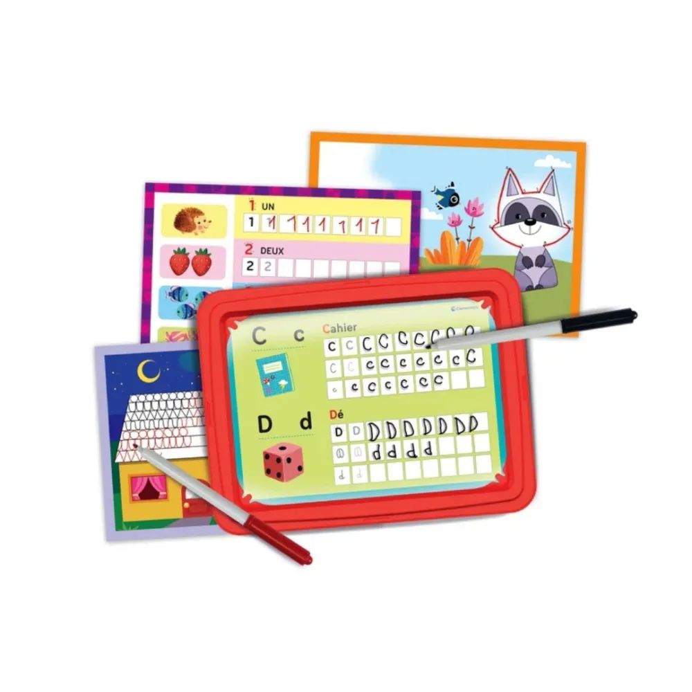 Learn the alphabet and new words with this fun educational game! Includes a transparent slate, marker, and activity cards to develop pre-writing, fine motor skills, language, and focus. The perfect tool to introduce young children to writing and early literacy.