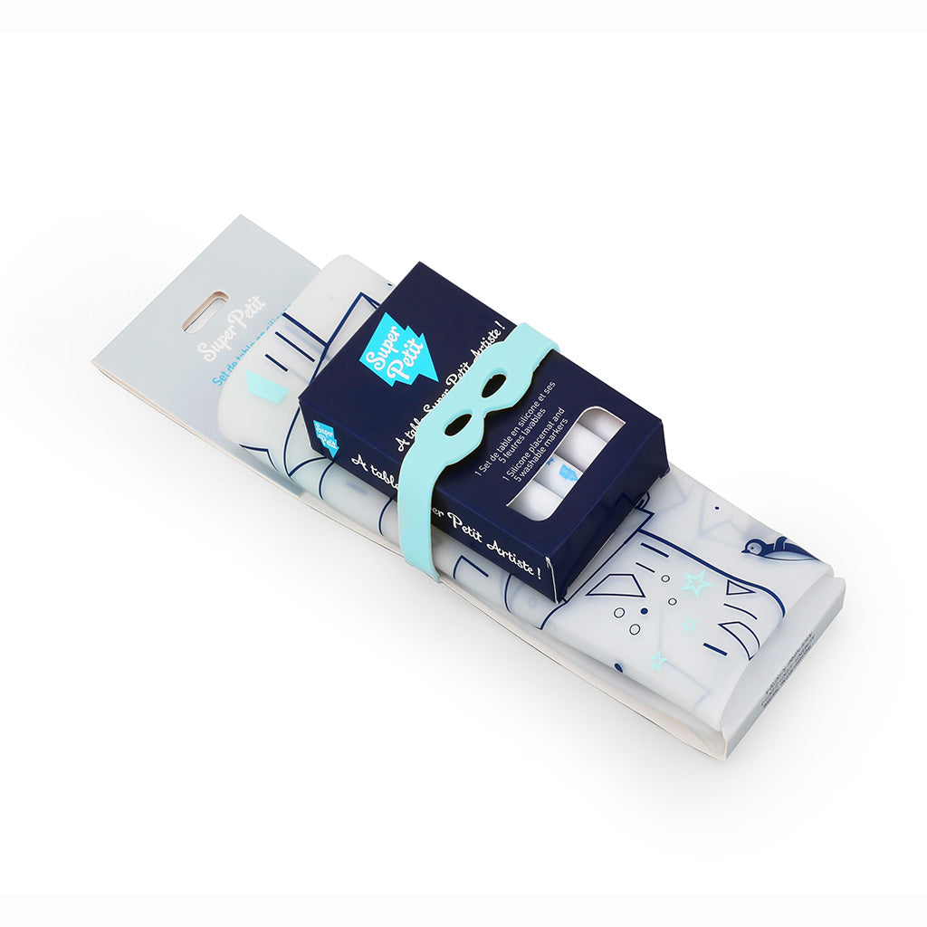 Super Petit presents an engaging set designed to captivate children, perfect for enjoyable moments. With its reusable silicone coloring surface, coloring becomes effortless and enjoyable. Crafted entirely from 100% food-grade silicone, the product guarantees safety and is complemented by a non-porous antibacterial surface, ensuring a secure environment for your little ones. The set includes a convenient silicone marker, along with 5 additional markers and a holder, all easy to clean.