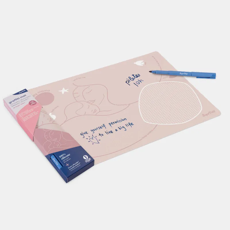 Super Petit presents an engaging set designed to captivate children, perfect for enjoyable moments. With its reusable silicone coloring surface, coloring becomes effortless and enjoyable. Crafted entirely from 100% food-grade silicone, the product guarantees safety and is complemented by a non-porous antibacterial surface, ensuring a secure environment for your little ones. The set includes a convenient silicone marker, along with 5 additional markers and a holder, all easy to clean.