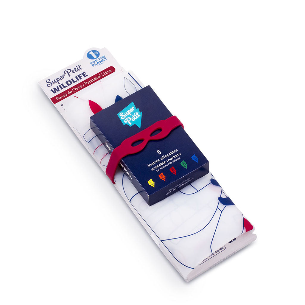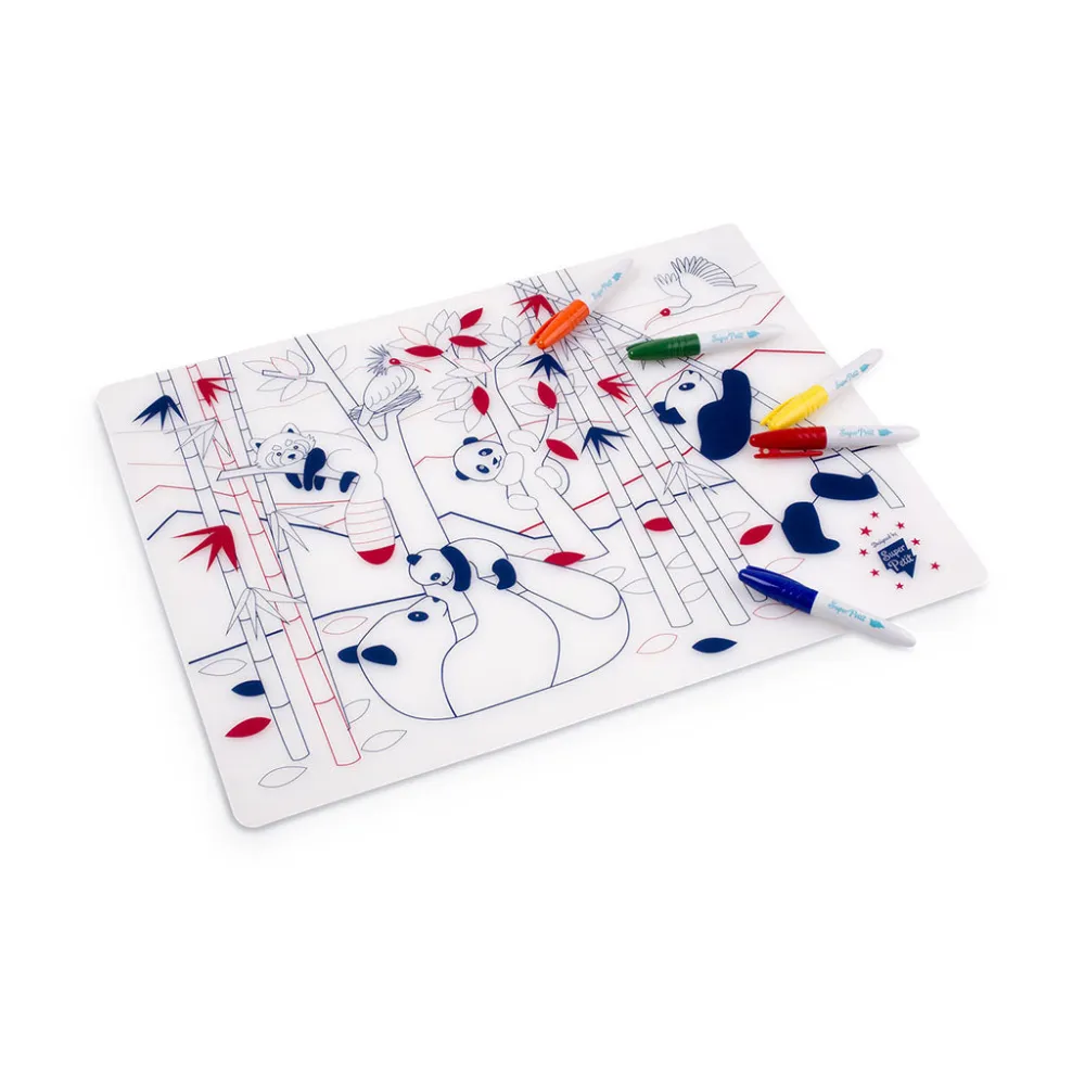 Super Petit presents an engaging set designed to captivate children, perfect for enjoyable moments. With its reusable silicone coloring surface, coloring becomes effortless and enjoyable. Crafted entirely from 100% food-grade silicone, the product guarantees safety and is complemented by a non-porous antibacterial surface, ensuring a secure environment for your little ones. The set includes a convenient silicone marker, along with 5 additional markers and a holder, all easy to clean.