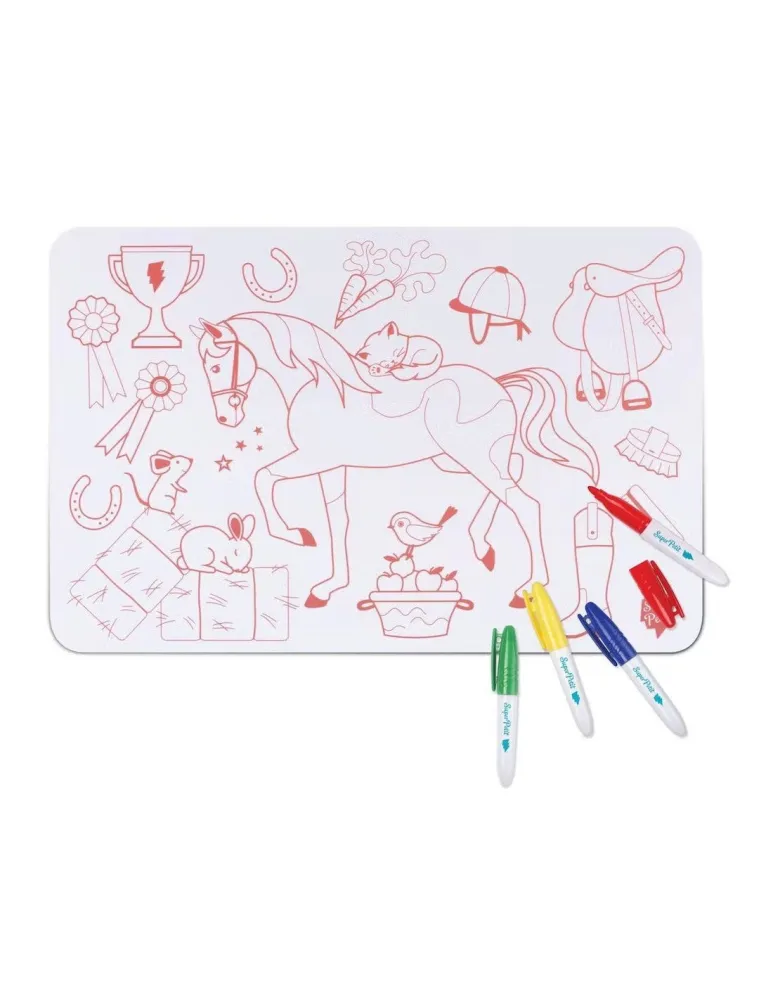 Super Petit presents an engaging set designed to captivate children, perfect for enjoyable moments. With its reusable silicone coloring surface, coloring becomes effortless and enjoyable. Crafted entirely from 100% food-grade silicone, the product guarantees safety and is complemented by a non-porous antibacterial surface, ensuring a secure environment for your little ones. The set includes a convenient silicone marker, along with 5 additional markers and a holder, all easy to clean.