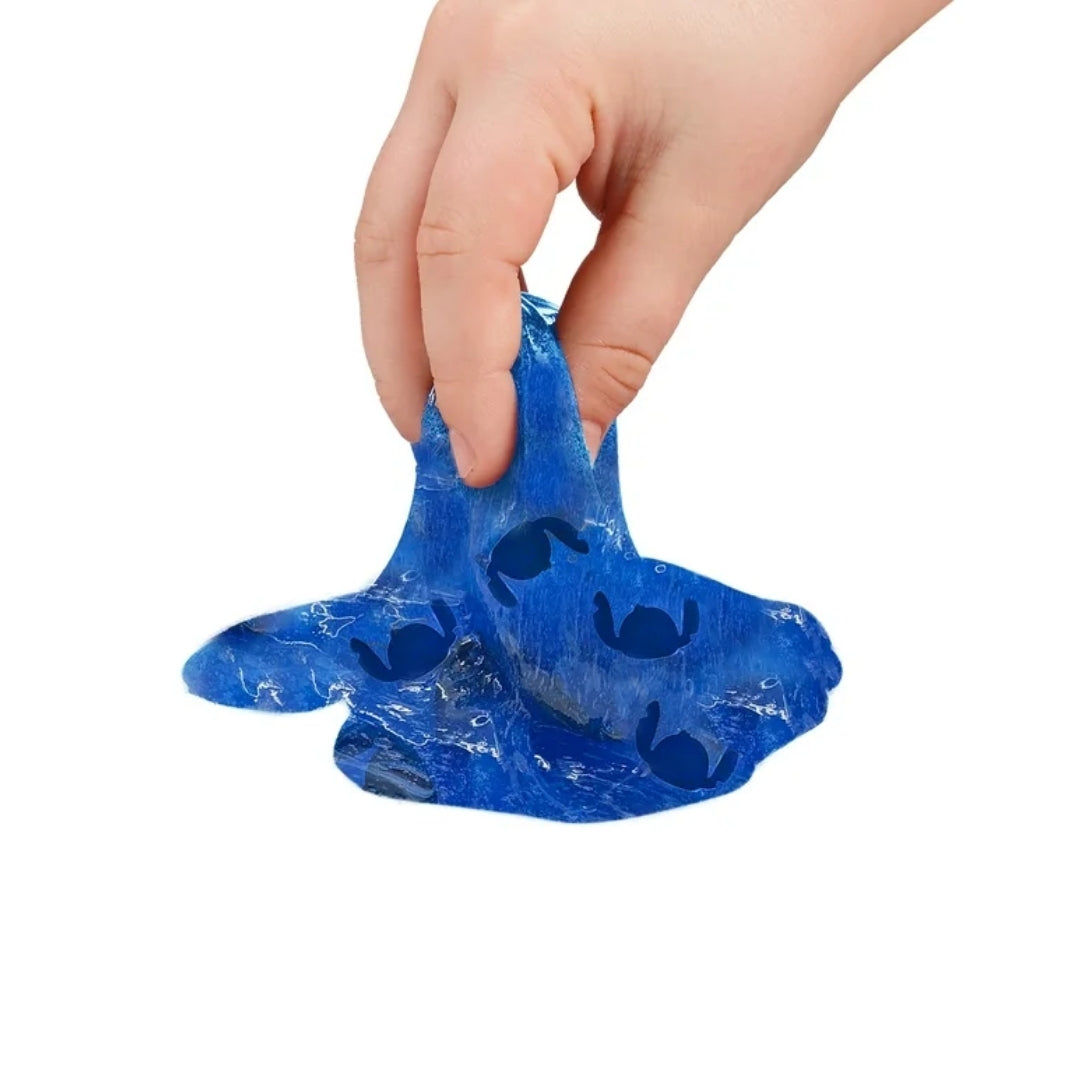 Enjoy a soft, stretchy blue Cra-Z-Slimy glitter slime packed inside a cute Disney Stitch figure-shaped container, complete with Stitch-shaped confetti for mixing. The bright blue slime is smooth and airy, offering a satisfying sensory feel. Once playtime ends, store it back in the Stitch container to keep it fresh for the next session.