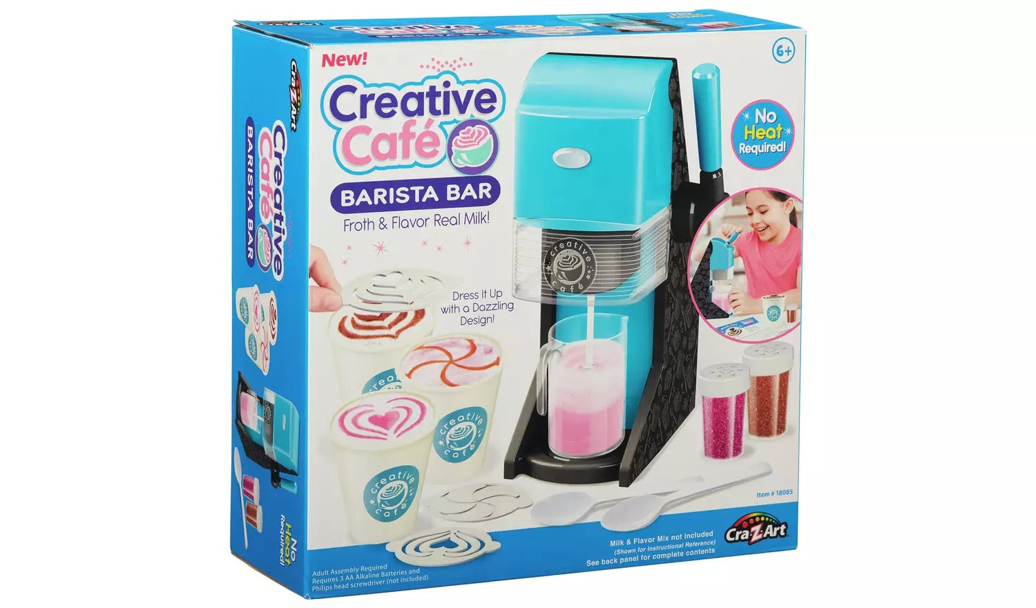 This product is an ideal gift for children aged 6 years and above who enjoy crafting delicious frothy drinks. Serving as the perfect role-playing toy, the Barista Bar enables kids to immerse themselves in the role of a barista, crafting cafe creations for friends and family. The set includes a frothing unit, frothing jug, stencils, shaker bottles, spoons, paper cups, chocolate and strawberry flavor mixes, as well as recipe and tip cards.