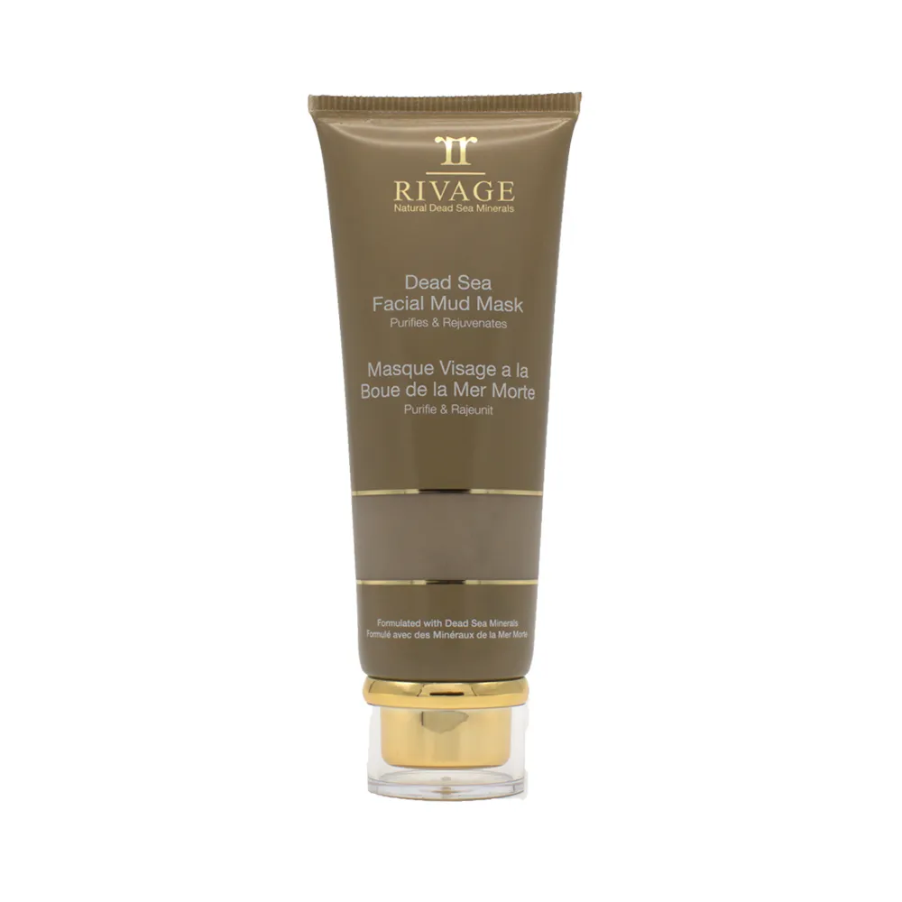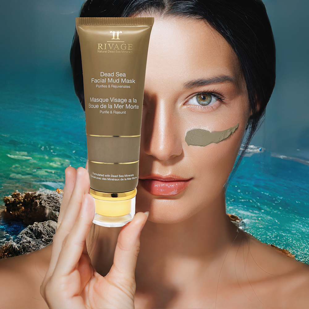 Cleanse your face with Rivage Liquid Cleanser or Black Mud Soap.