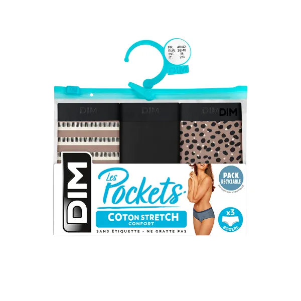 Dim Pack Of 3 Women'S Panties Sleep Short In Stretch Cotton With Savannah Patterns In Black Les Pockets