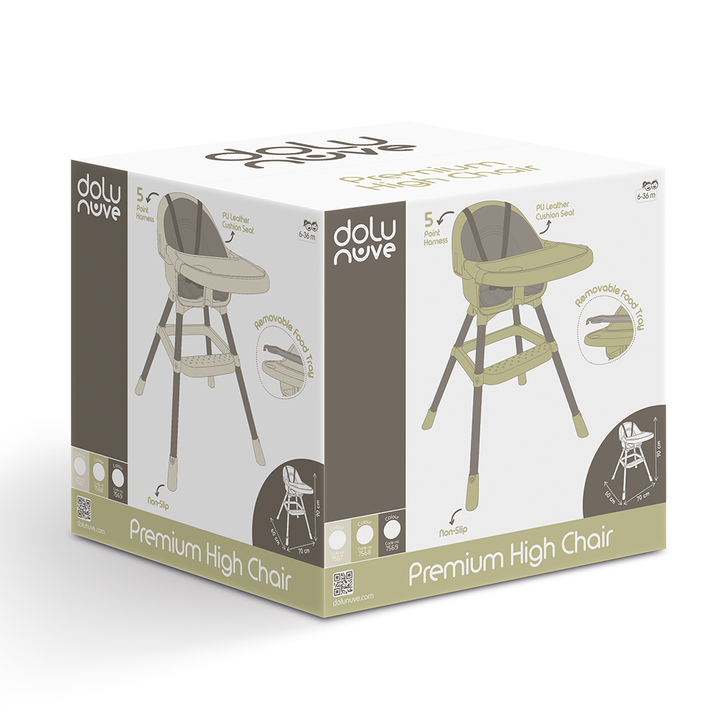 Dolu Premium Non-Slip High Chair, Safe, Beige / 1P