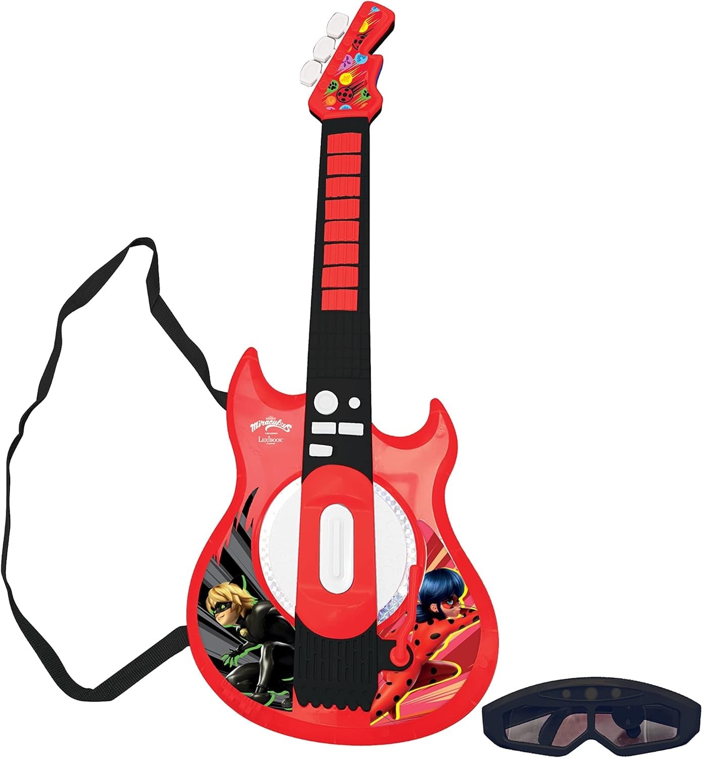 So grab your guitar, put on your shades, and get ready to rock the house with the Lexibook Miraculous Electronic Lighting Guitar! This guitar comes with: