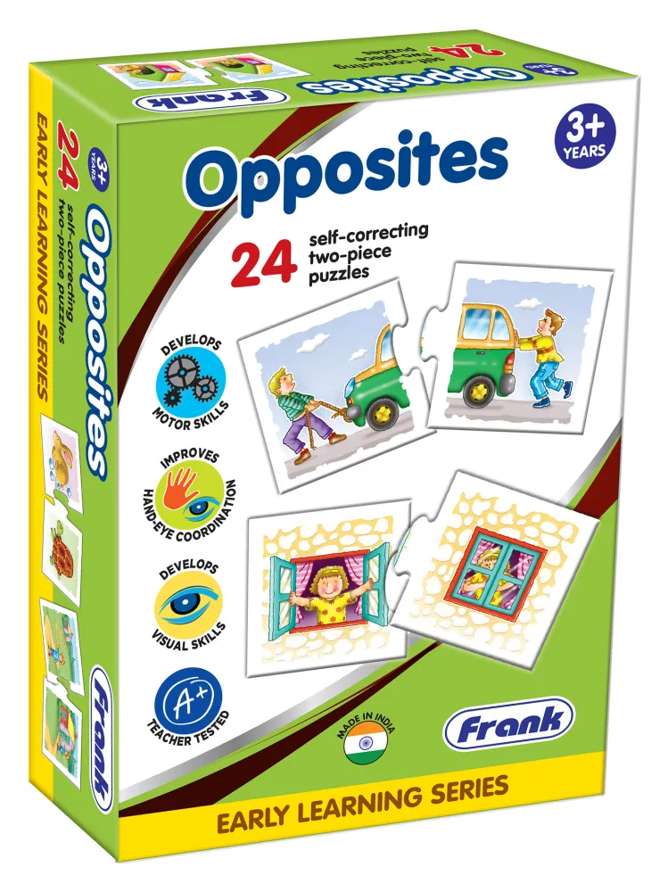 This colourful educational puzzle uses the “play and learn” technique to introduce the child to the concept of opposites using pictures. The child has to fix each pair of picture pieces that are opposite to each other, for example, hot and cold. The puzzle pieces are self-correcting, meaning that only the correct pieces will fit properly with each other. This ensures that the child learns the concept correctly.