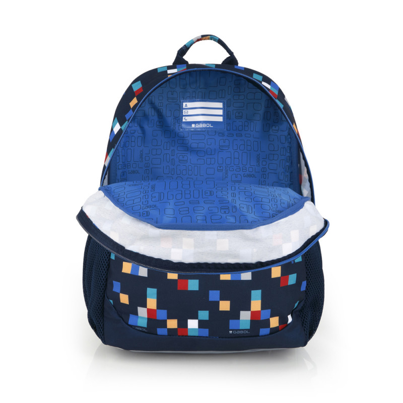 Gabol CUBIK trolley-adaptable backpack. Trolley-adaptable backpack made with water-resistant material. Its thermoformed back offers comfort and ideal protection for cushioning items inside. Padded base with a reinforced plastic protector. Padded and reinforced shoulder straps. Includes an ID card and organizer inside. Exterior side pocket. Made of PVC-free material with high-density, premium-quality fabric. Dimensions: 31 x 41 x 15 cm.