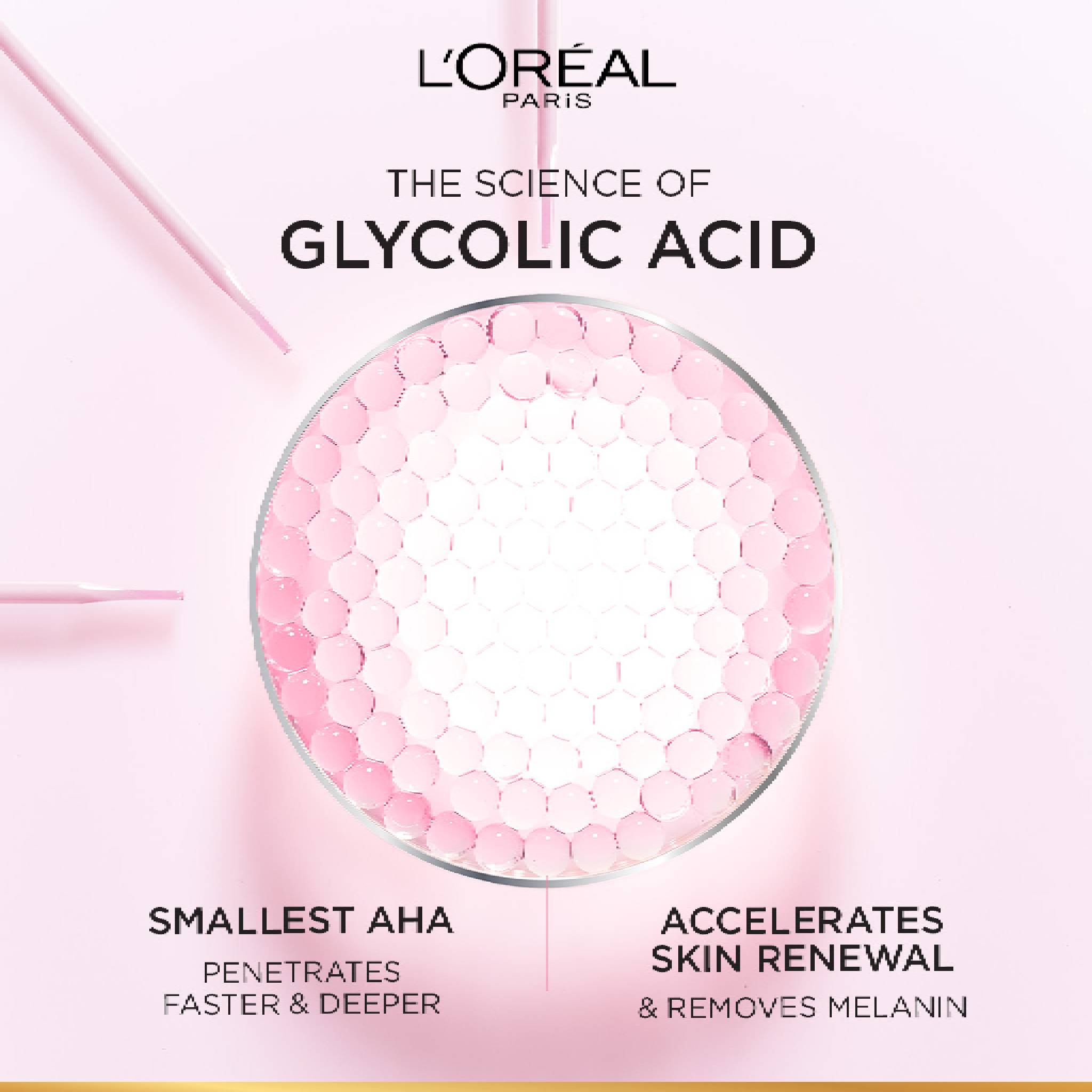 Formulated with brightening Glycolic Acid, effectively corrects the appearance of dullness and reduces dark spots, for visibly even glowing skin.