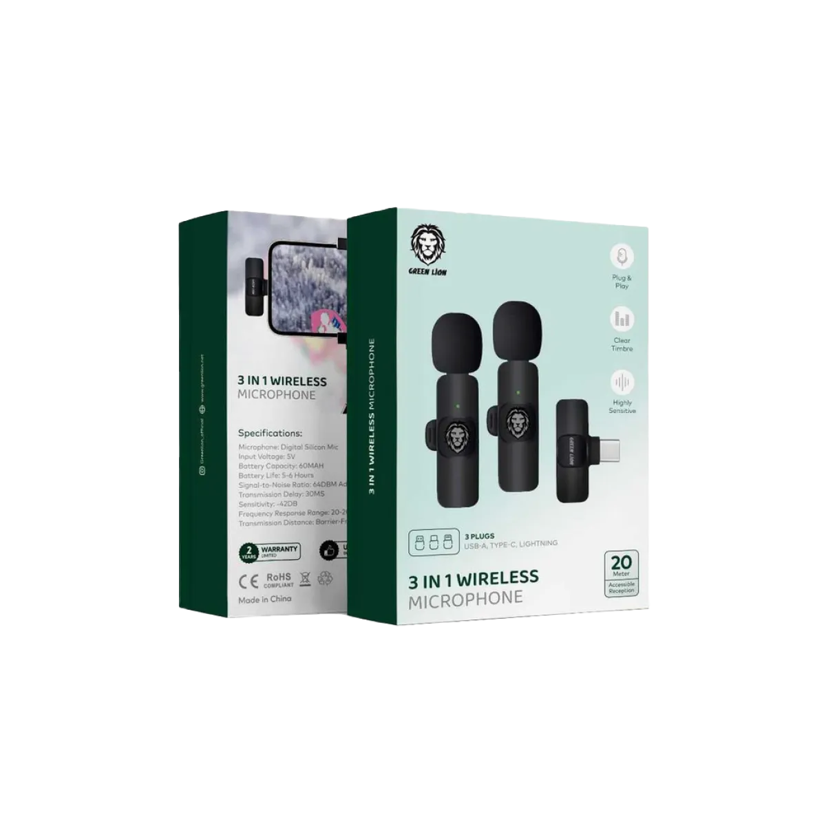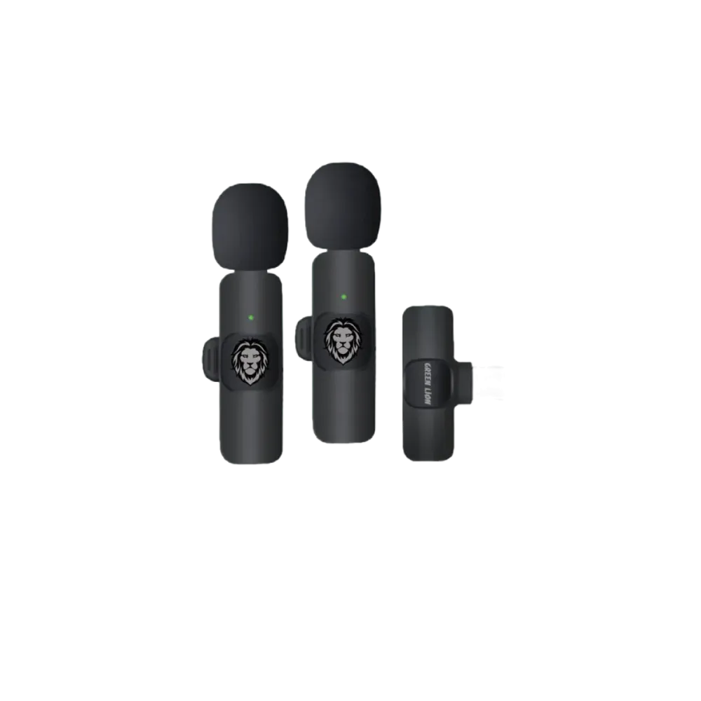 $NaNGreen Lion (GN3WIRMICPBK) 3in1 Wireless Microphone, USB & USB-C & Lightning - Black 2.4GHz, 20m Range Black Highly Sensitive, 42dB, Clear Timbre Long-lasting Battery, 60mAh Plug & Play, USB, USB-C, Lightning