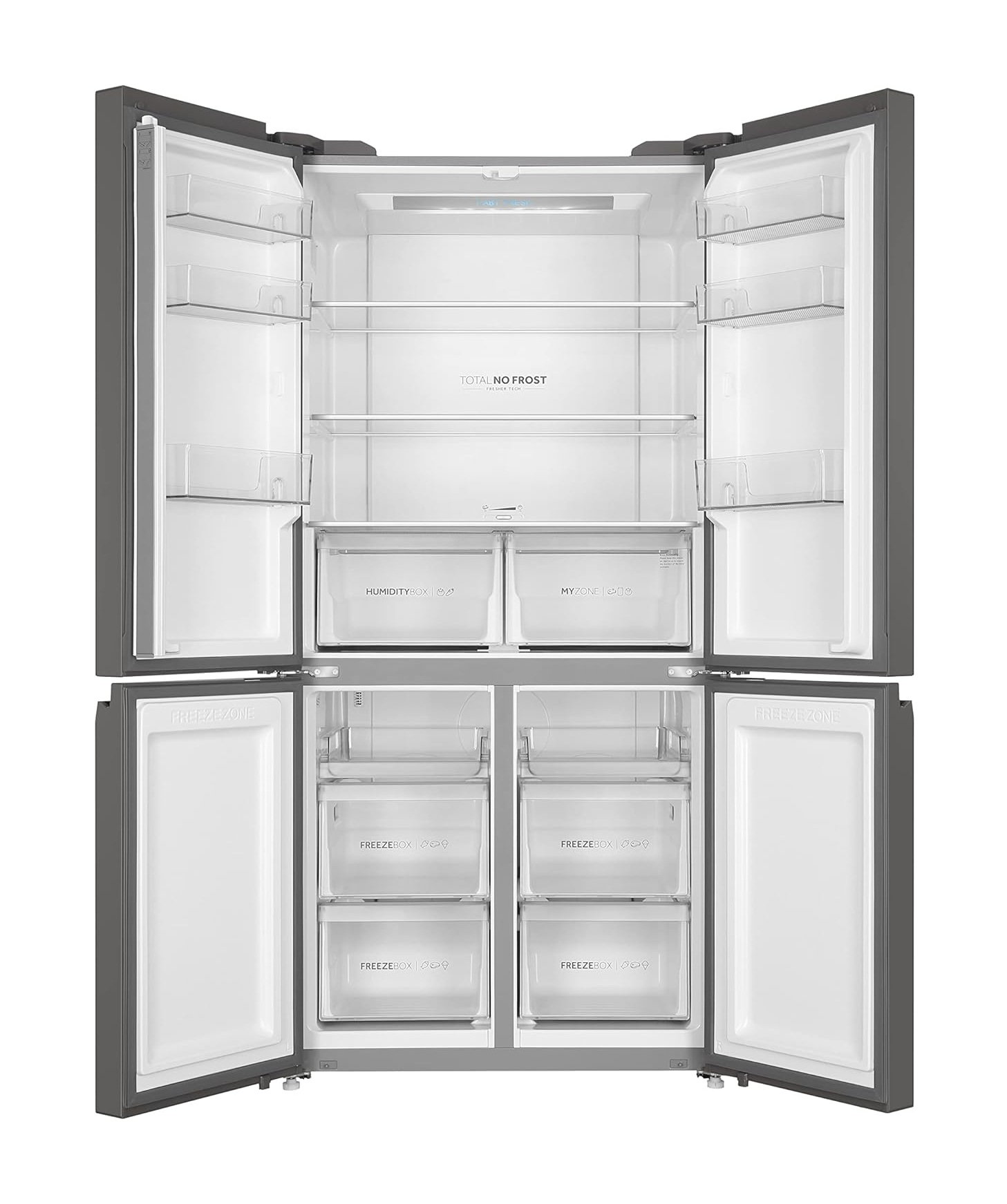 No Frost 4 Doors, Led Display, Convertible Zone, Integrated Handle, Refrigerant R600A, Inverter Compressor, Black Glass