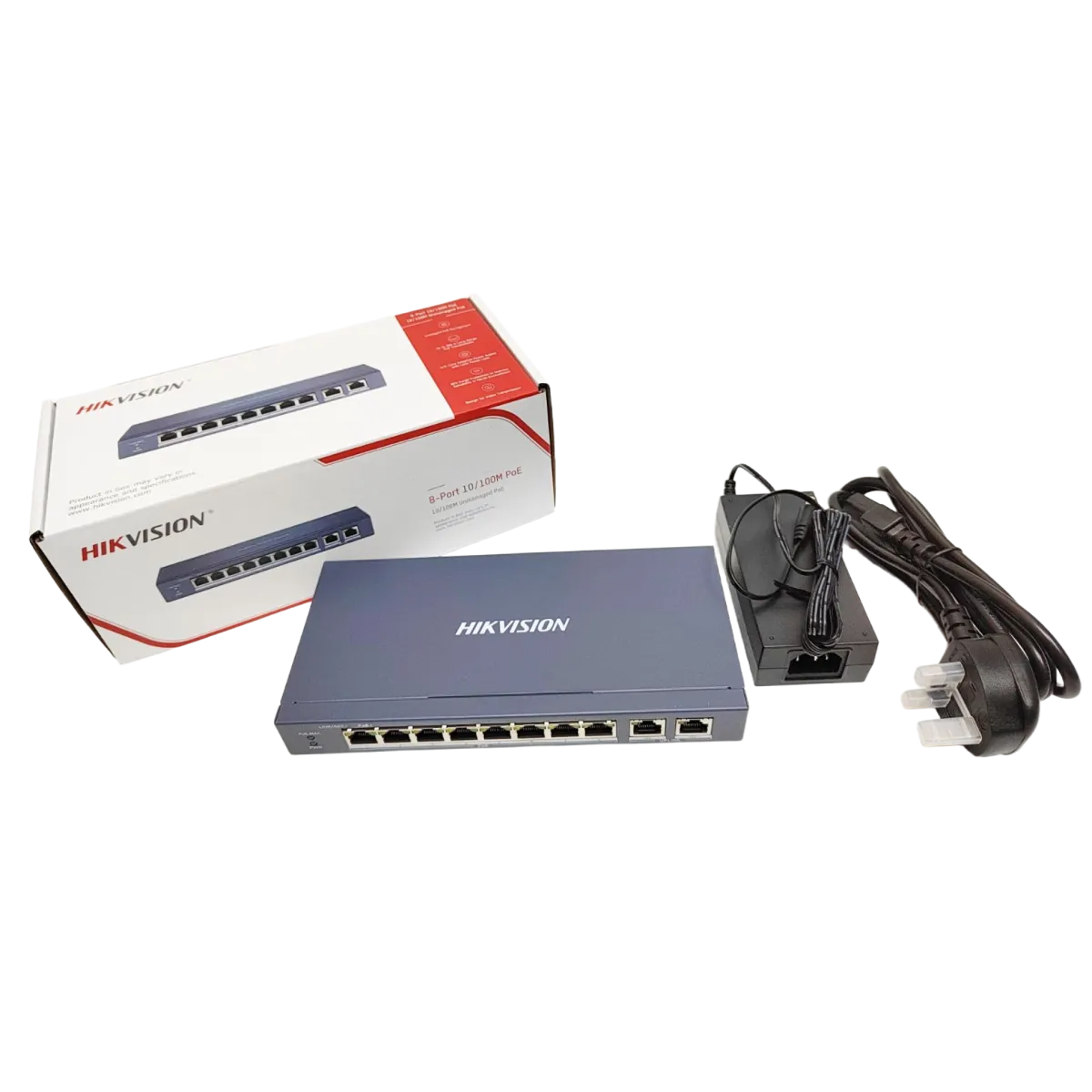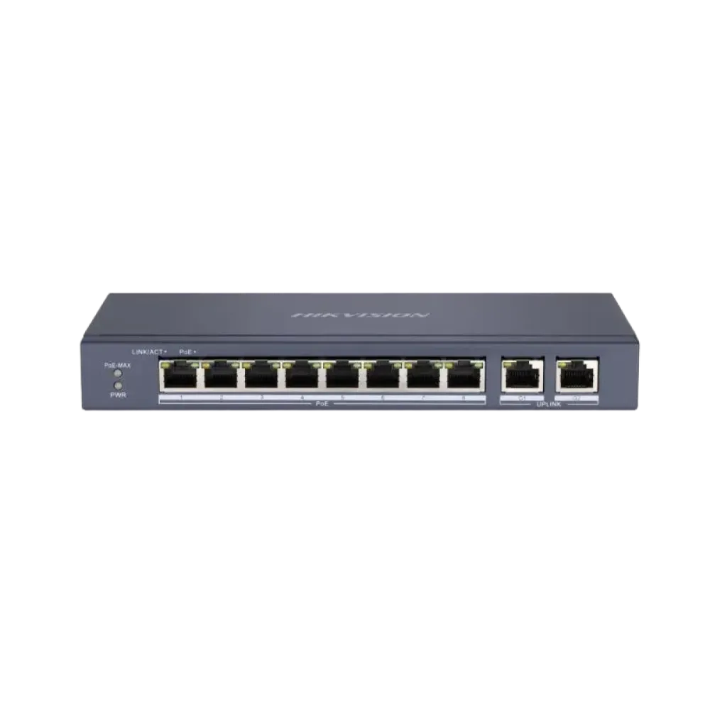 $NaNHikvision (DS-3E0310P-E/M) 8 Port Fast Ethernet Unmanaged POE Switch - Black Ports: 8x 10/100 Mbps PoE port,2x Gigabit RJ45 port MAC Address Table: 8K Switching Capacity: 5.6Gps Packet Forwarding Rate: 4.17 Mpps POE Standard: IEEE 802.3af;IEEE 802.3at