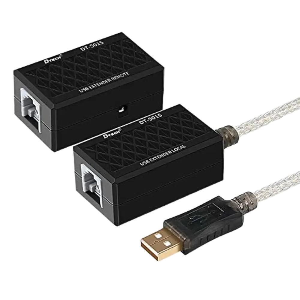 $NaNHitech (8029) Dtech DT-5015 USB1.1 Extender 60m Via CAT5e UTP Cable - Black- Interface: Compliant with USB 1.1 specification- Function: Extends the distance of a USB device from a USB-enabled computer up to 60m- LED indicator: desgined for easy status monitoring;- Ports: 1x Local USB-A male - 1x Remote USB-A Female
