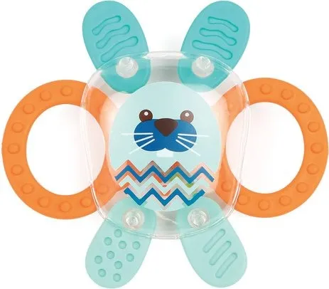 A fun little rattle. The rattle is a great classic to give to baby for their motor development. Grasping an object first results in a grasping reflex. Designed for little hands, the cute little bunny is lightweight and very easy to hold. Its bright colors and transparent body attract little ones' attention. Surprise! A multitude of small colored balls come to life when handled. The rattle encourages baby to follow it with their eyes when shaken, thus developing their field of vision. It also awakens their hearing acuity by listening to the small balls bounce in a star shape with each shake. Its ears and legs are made of soft and flexible plastic. They soothe baby's little teeth, who will love putting the rattle in their mouth. Sturdy, it easily withstands sudden movements and biting. It is very practical for perfect hygiene. This must-have can be taken anywhere to stimulate little ones in all circumstances!