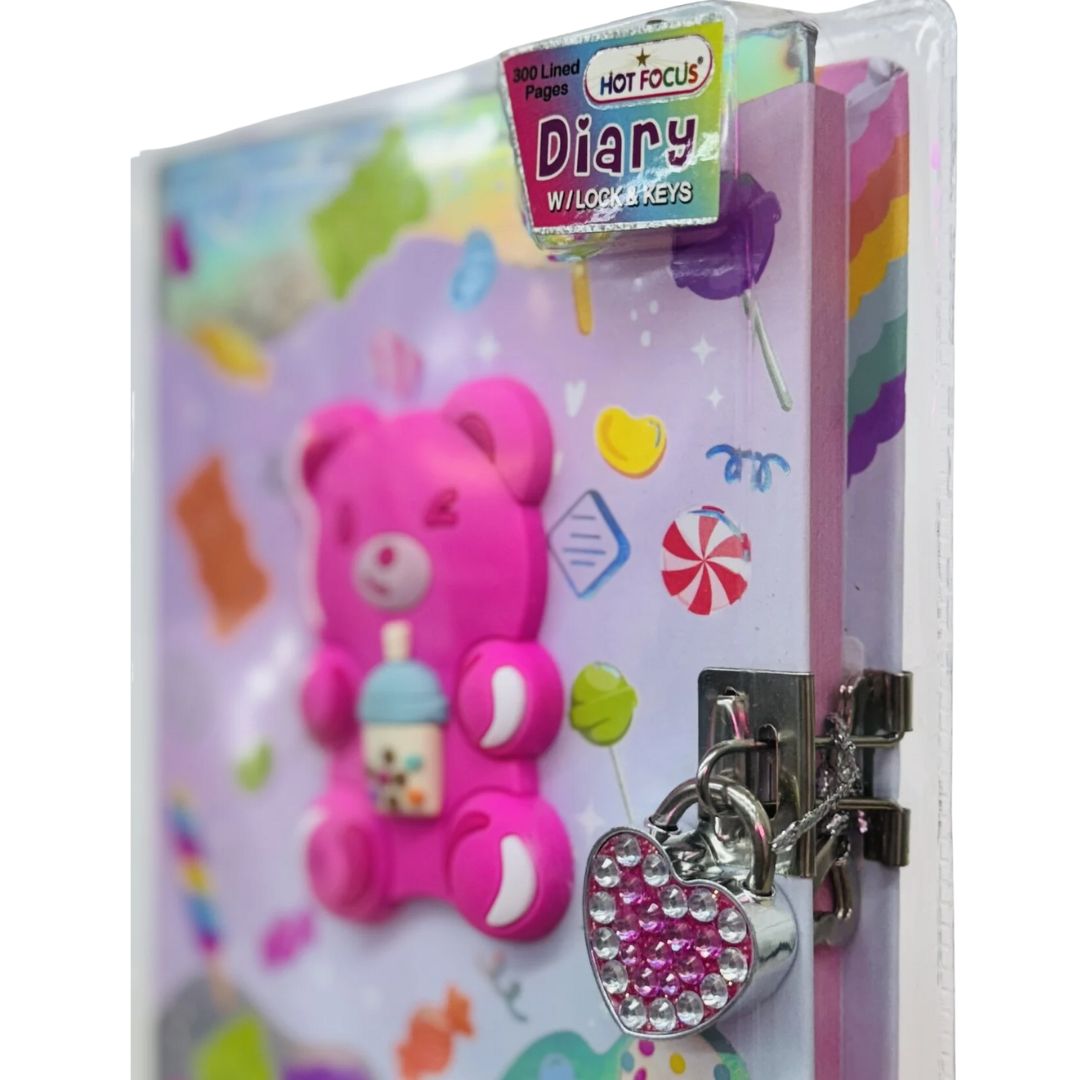 The Hot Focus Gummy Bear Diary with Lock & Keys is a fun and vibrant diary perfect for kids who love whimsical designs.
